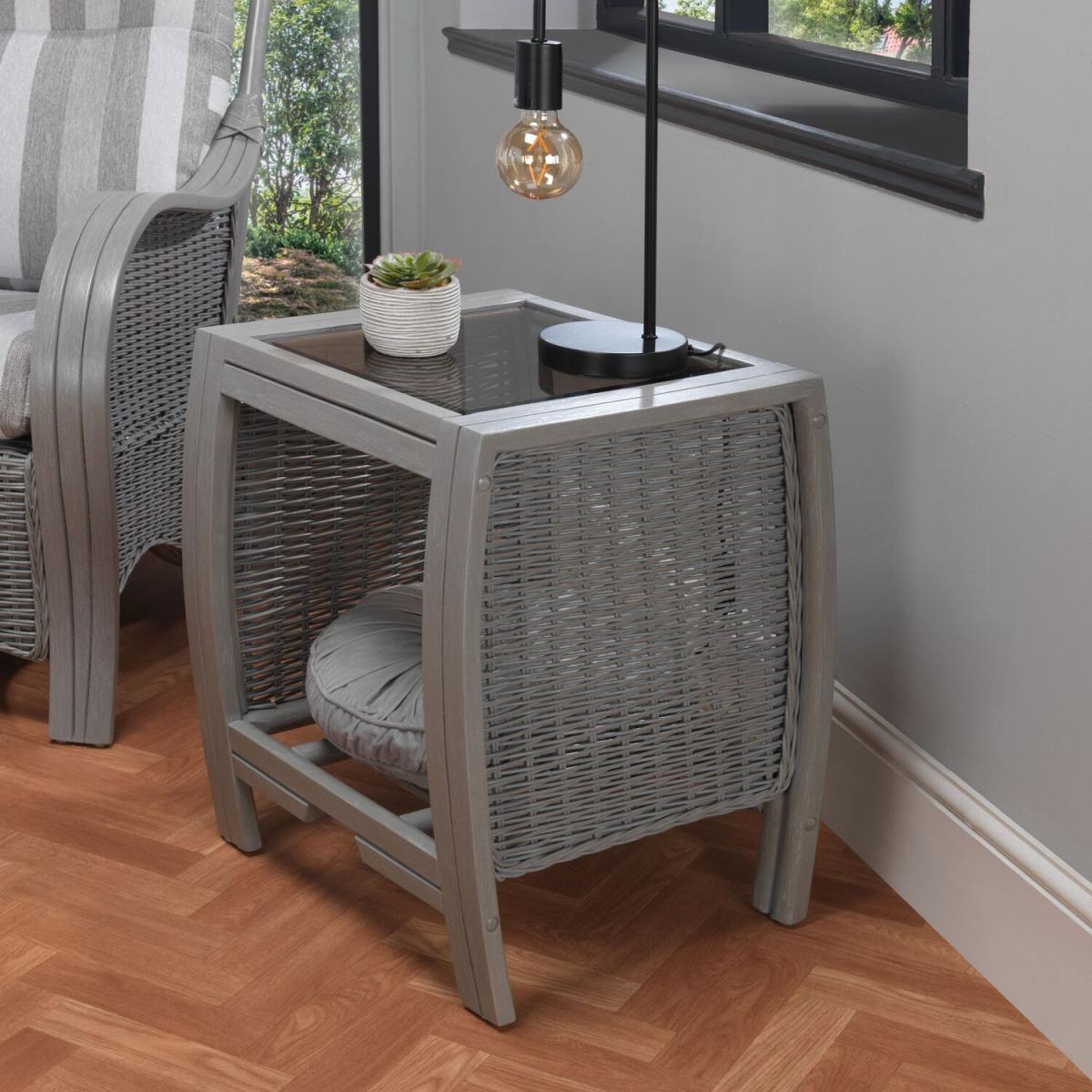 Turin Grey Cane Side Table - Grey