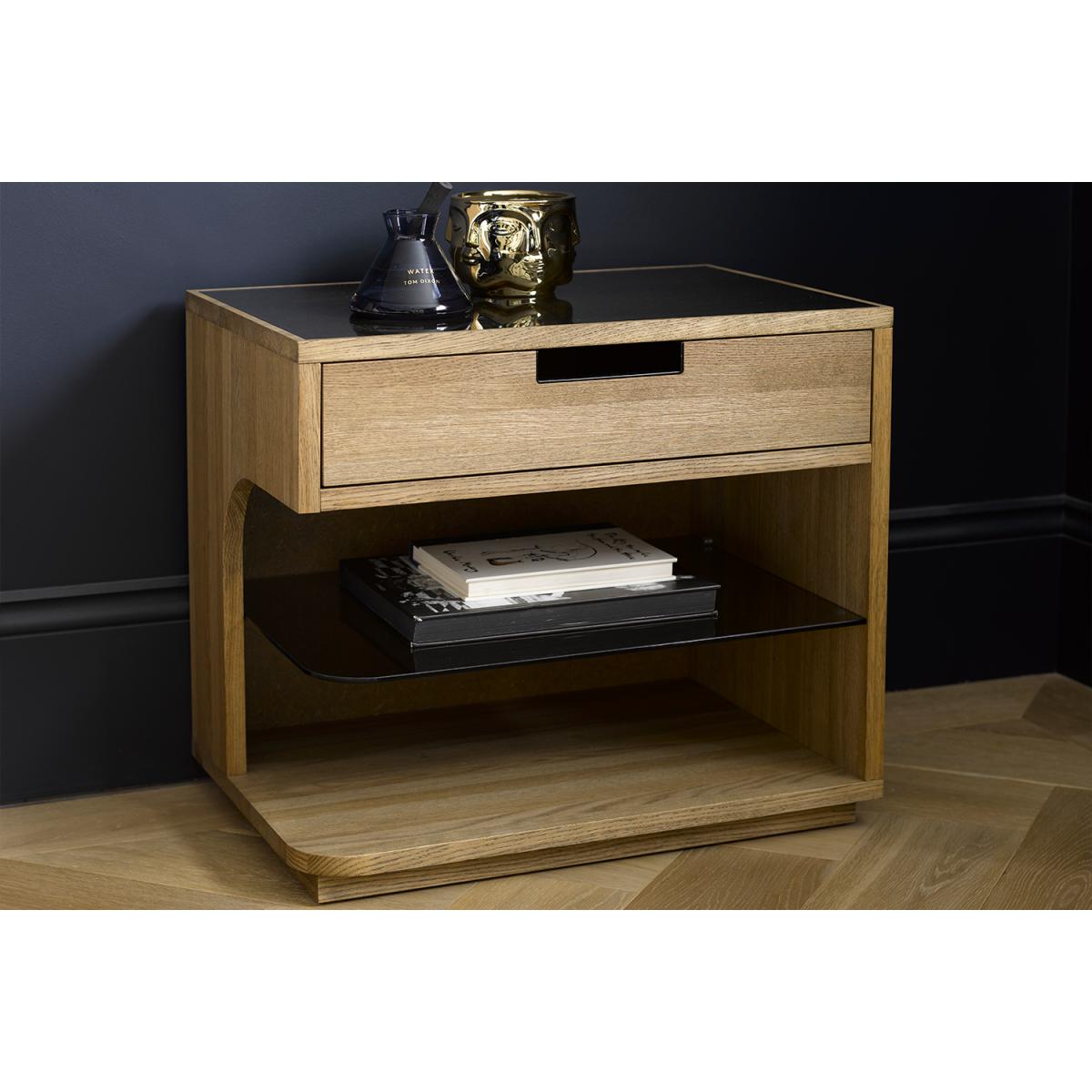 Turin RHF Bedside Table in Black Finish Oak - sofa.com