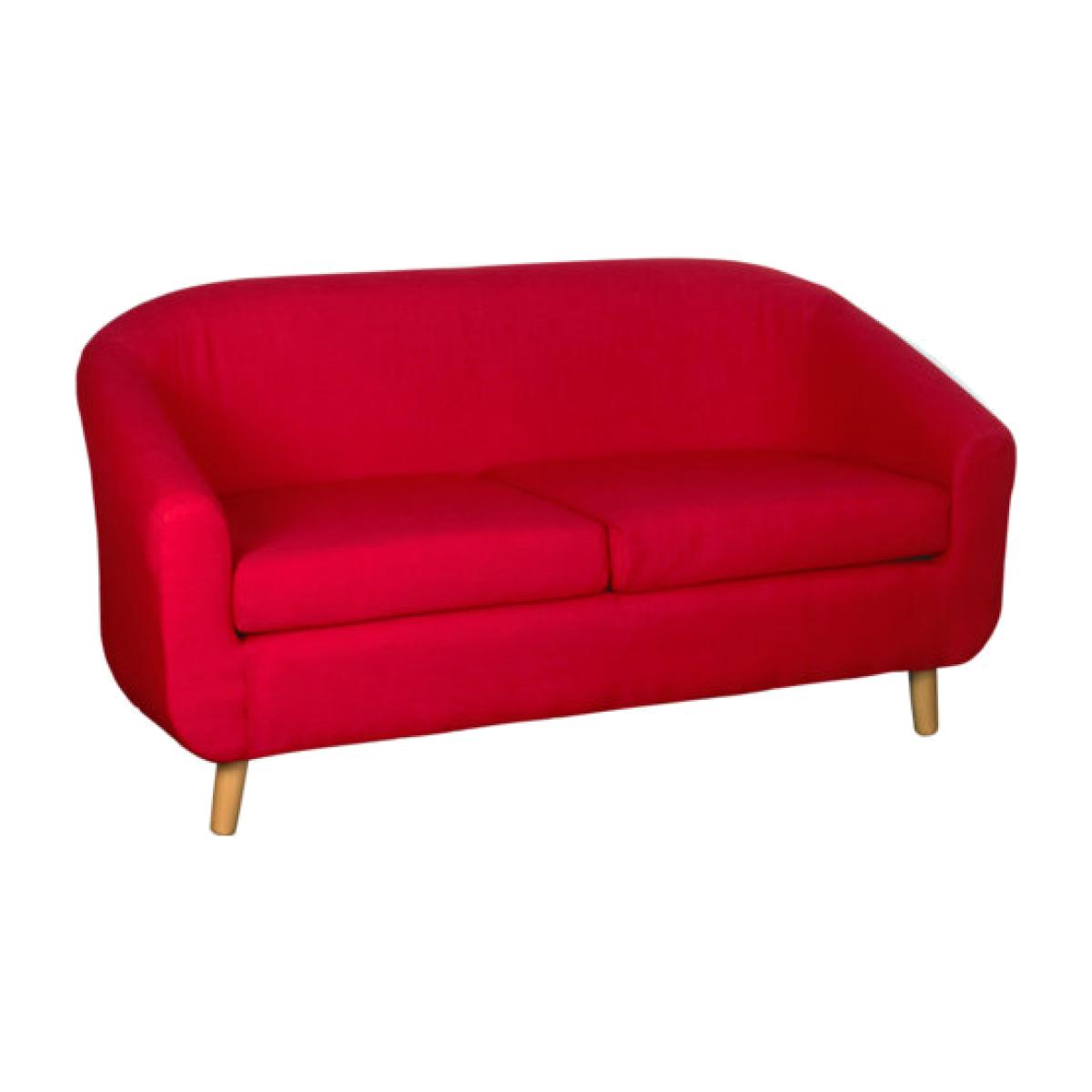 I love this red two seater for its bold colour and compact silhouette, making it a statement piece without overwhelming a space. It works particularly well in modern or minimalist interiors where a pop of colour can add personality, or in eclectic schemes to create a focal point. For styling tips, pair it with neutral or monochrome accessories to let the sofa stand out, and consider adding layered textiles like cushions or throws in contrasting textures to soften its look. Its simple form also lends itself to versatile placement, whether against a patterned wallpaper or in a neutral setting with just a few carefully chosen decor pieces.