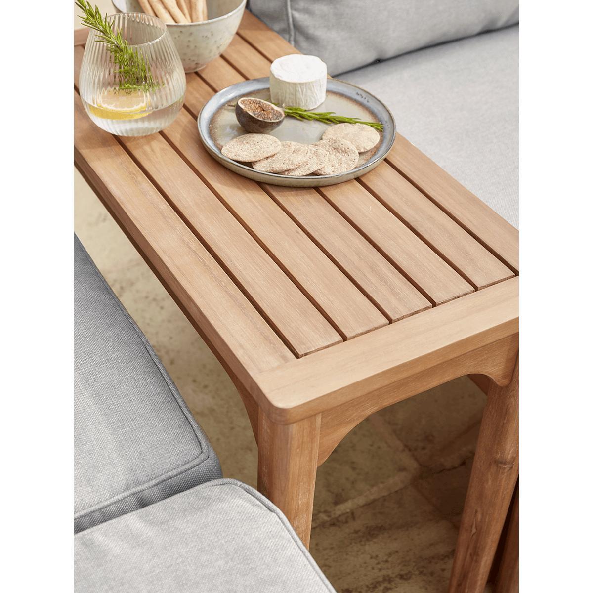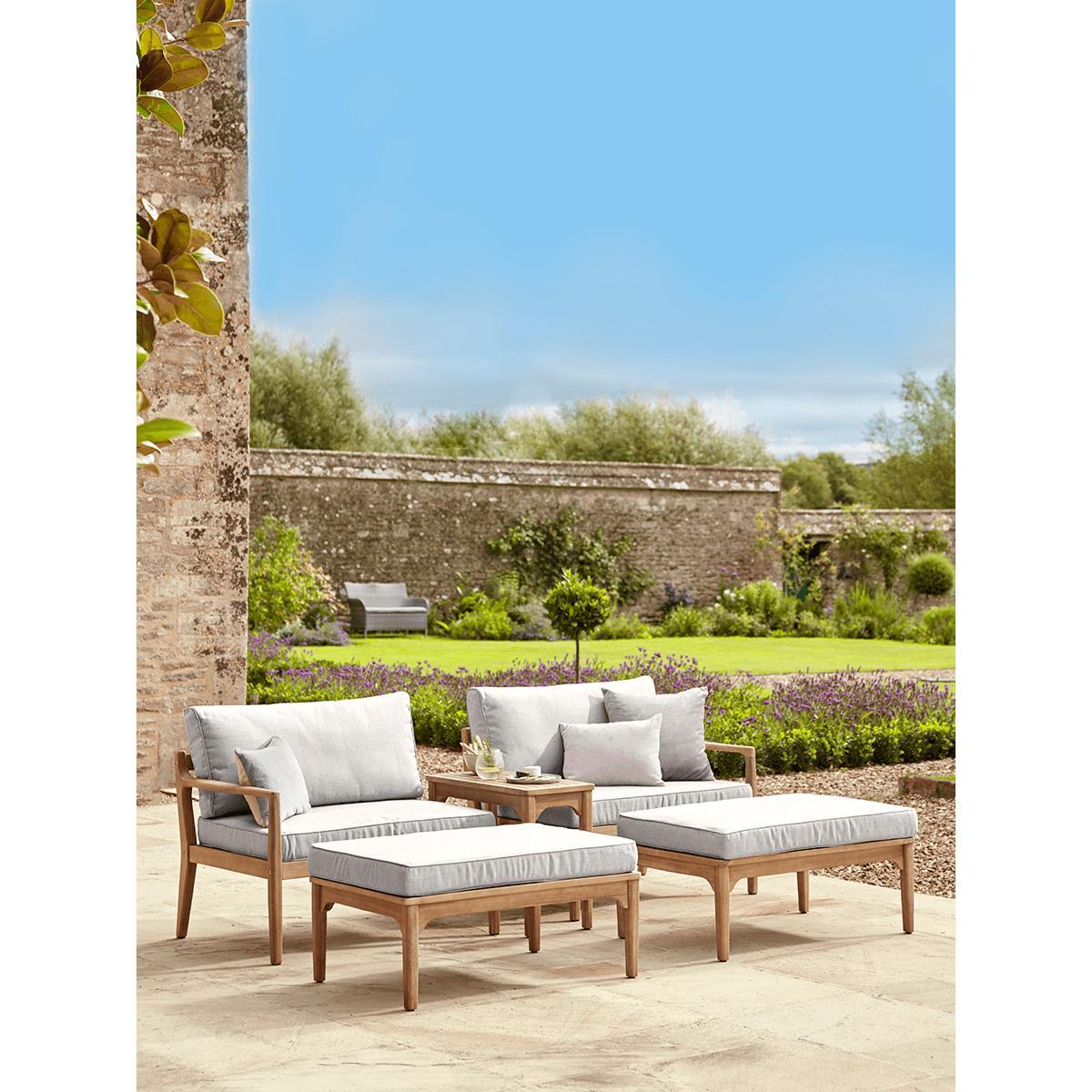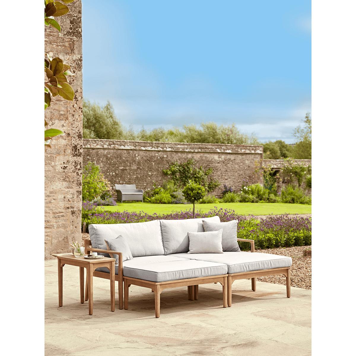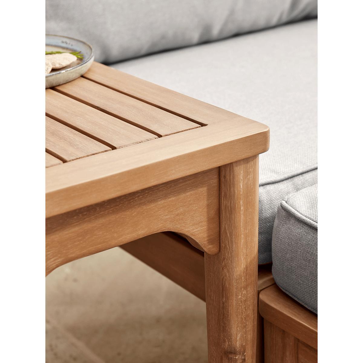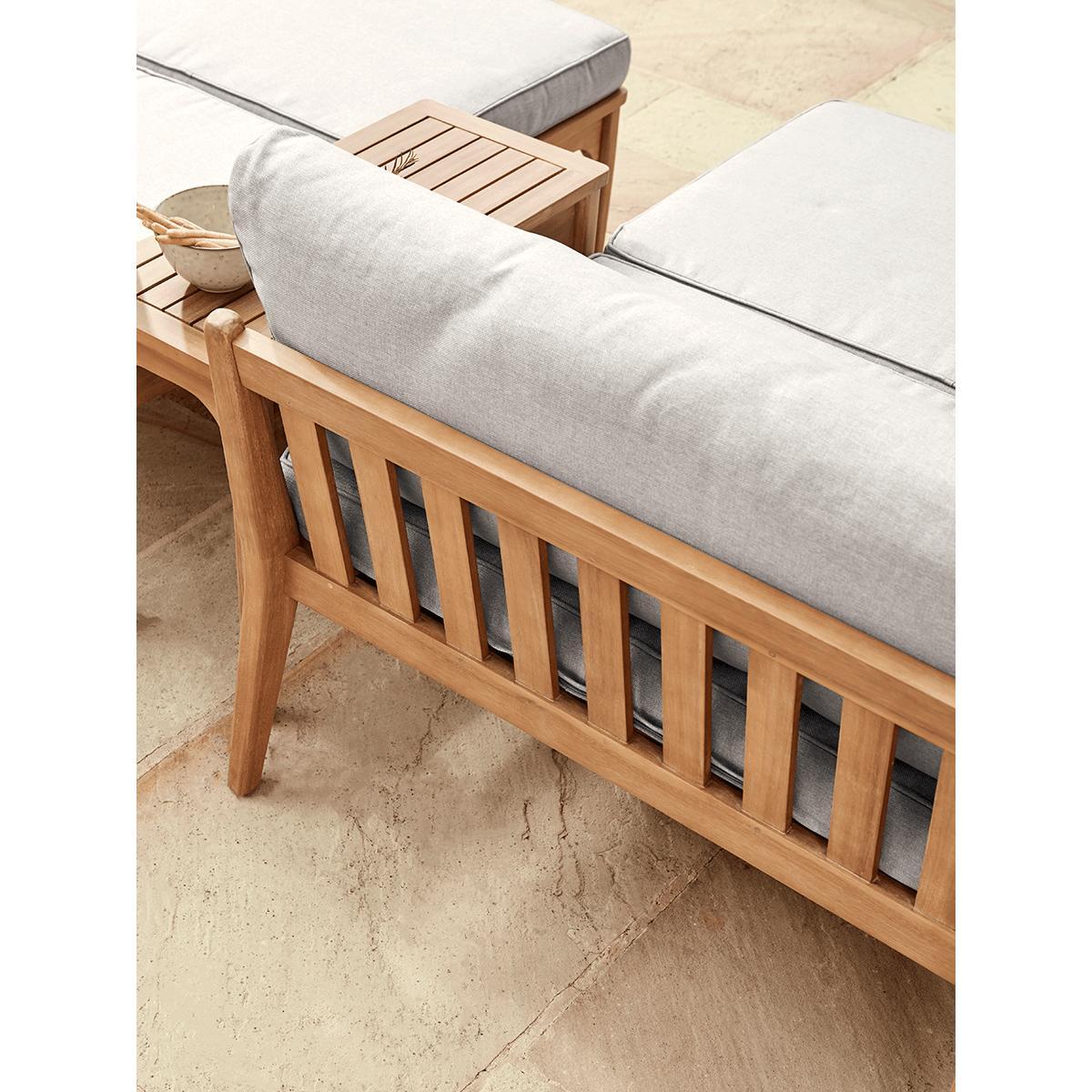 Bring mid-century clean lines to your outdoor space with our Turin Daybed. The warm tone and tactile finish of the acacia wood frame coupled with the generous dimension of the design delivers a premium look and with it ample comfort for long summer days. Sumptuous soft-toned cushions and a tall slender side table complete the set, which can be arranged in a variety of ways to suit your space.