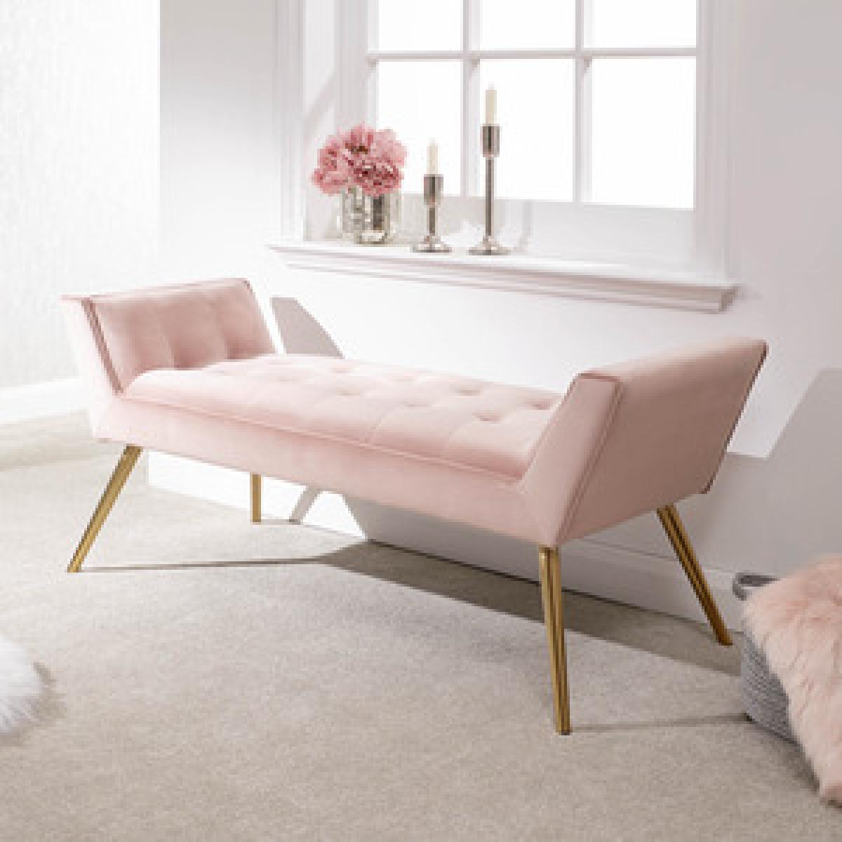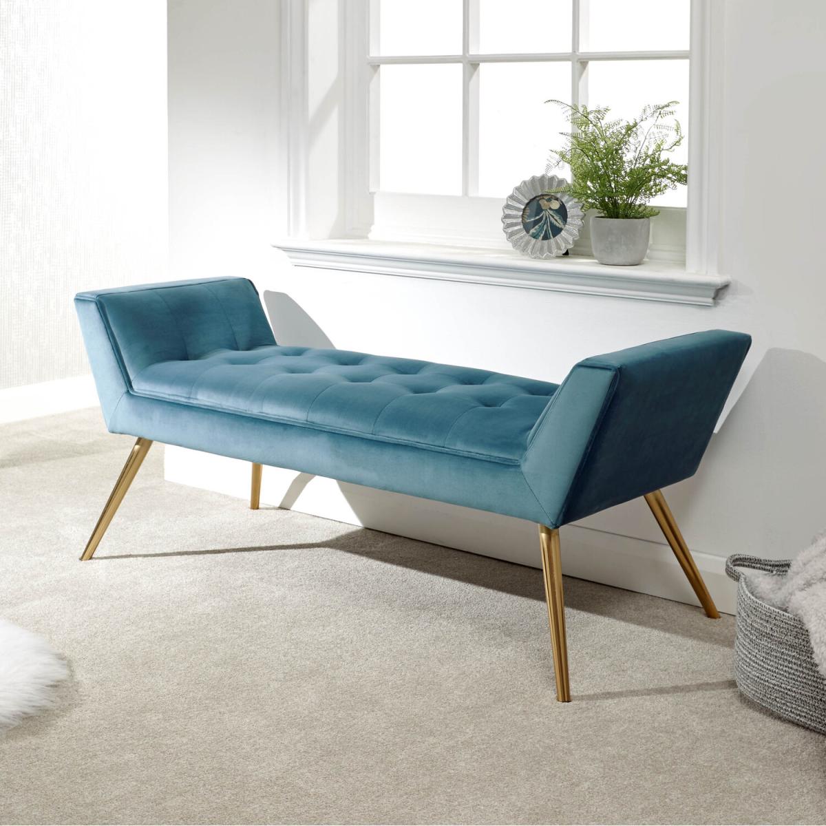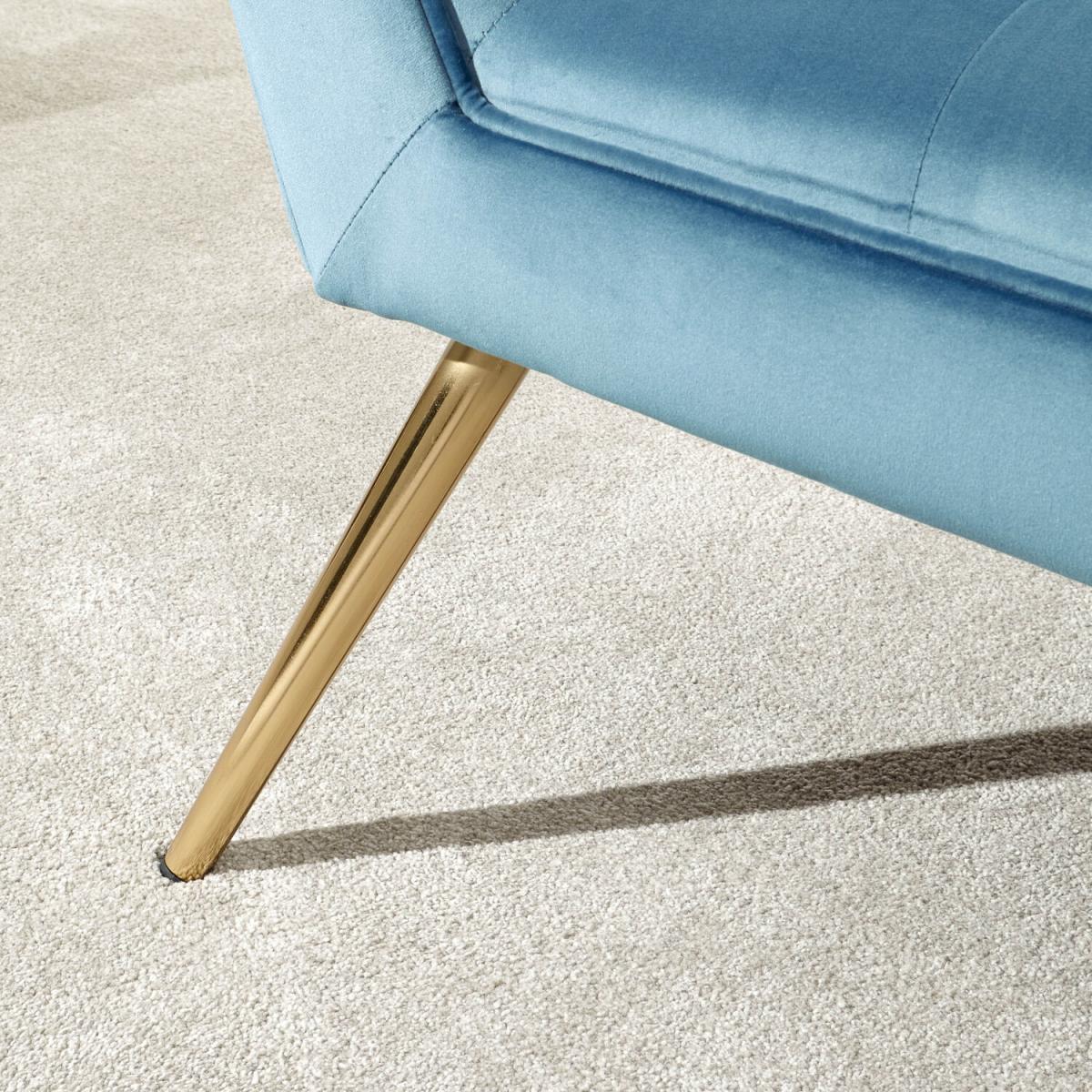 A versatile and elegant furnishing piece for any room, classic Turin makes a useful occasional seating option without compromising valuable floorspace. The padded, upholstered frame features smart mid-century styling and is supported on tapered gold metal legs that mirror the angled armrests. The tailored upholstery is enhanced by deep quilted buttons and piped accents to the outer edge. Turin's gorgeous plush fabric with velvety pile is available in a choice of on-trend colours that complement every type of interior.
