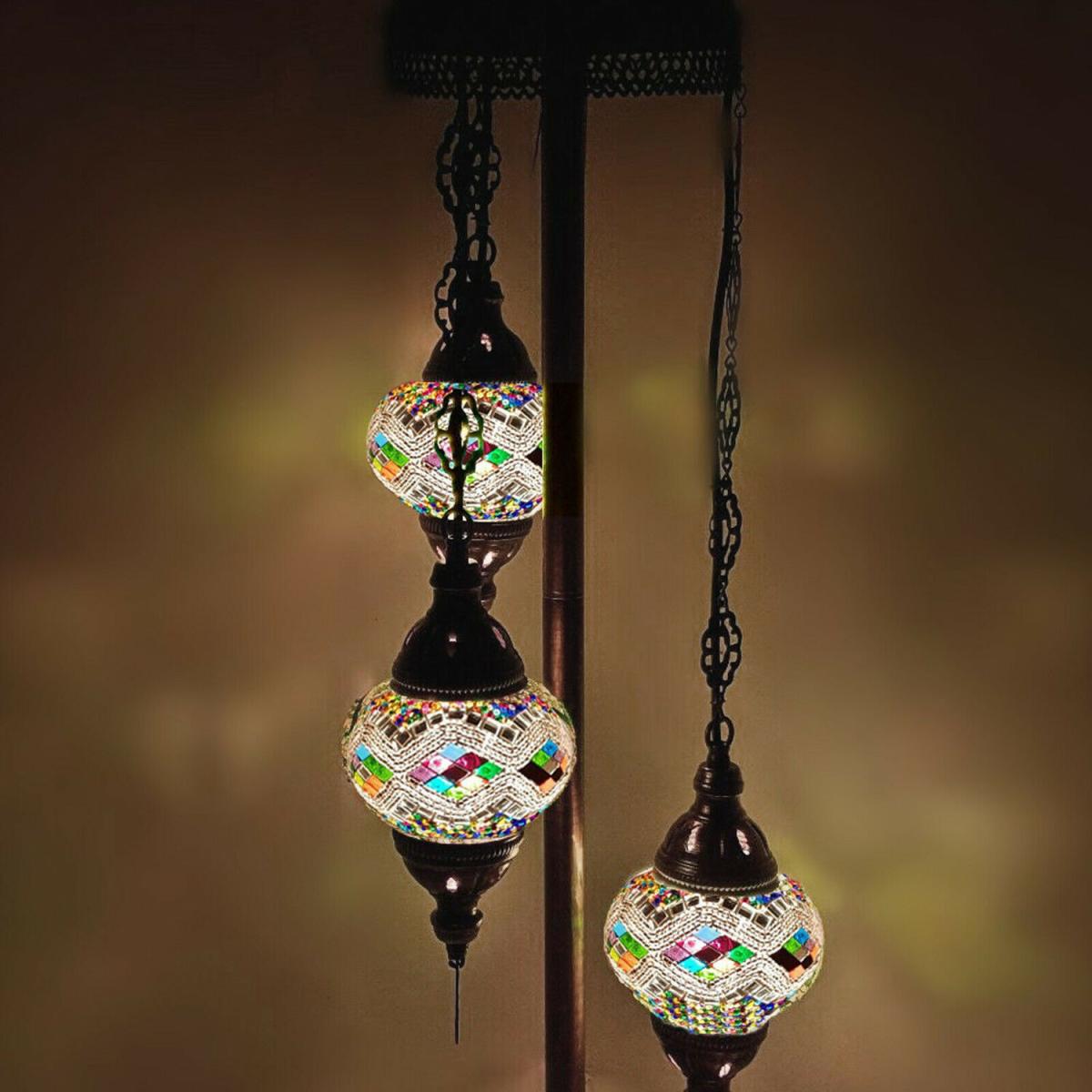 These beautifully hand-crafted floor lamps, exclusively by World Home Living, create light that beautifully blends into many different environments and settings. All lamps supplied by World Home Living conform to strict CE and UKCA standards. Similar lamps that are cheaper or bought in Turkey are not built to the required quality. Not only does the lamp feature a distinctive metal design, providing for a more stable and solid base, but the glass is stained and not painted. This ensures the lamp retains its beauty and quality. This lamp from World Home Living will bring a world of colours and designs into your home creating those special moments with friends and family.