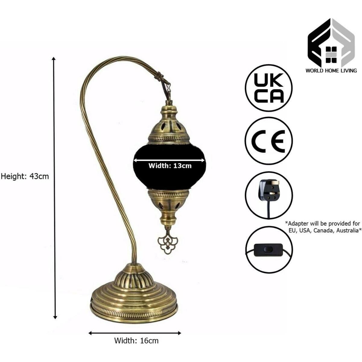 These beautifully handcrafted table lamps, exclusively by World Home Living, create light that beautifully blends into many different environments and settings. All lamps supplied by World Home Living conform to strict CE and UKCA standards. Similar lamps that are cheaper or bought in Turkey are not built to the required quality. Not only does the lamp feature a distinctive metal design, providing for a more stable and solid base, but the glass is stained and not painted. This ensures the lamp retains its beauty and quality.