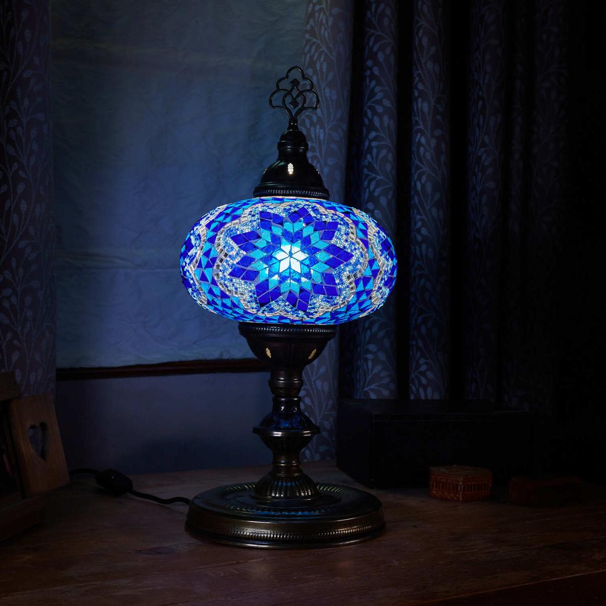 Turkish Mosaic Glass Table Lamp Size 5 Blue - Blue