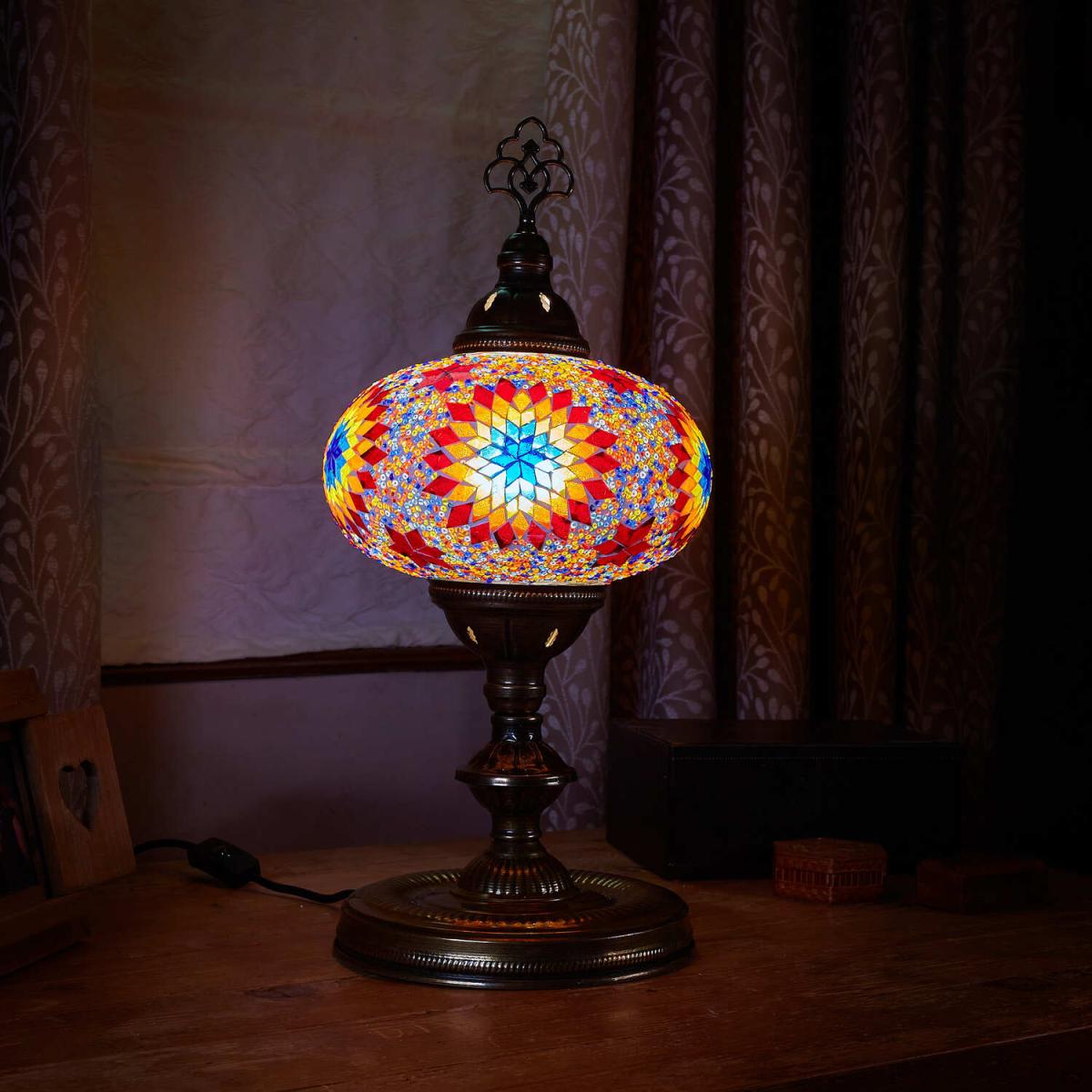 Turkish Mosaic Glass Table Lamp Size Fireball - Fireball