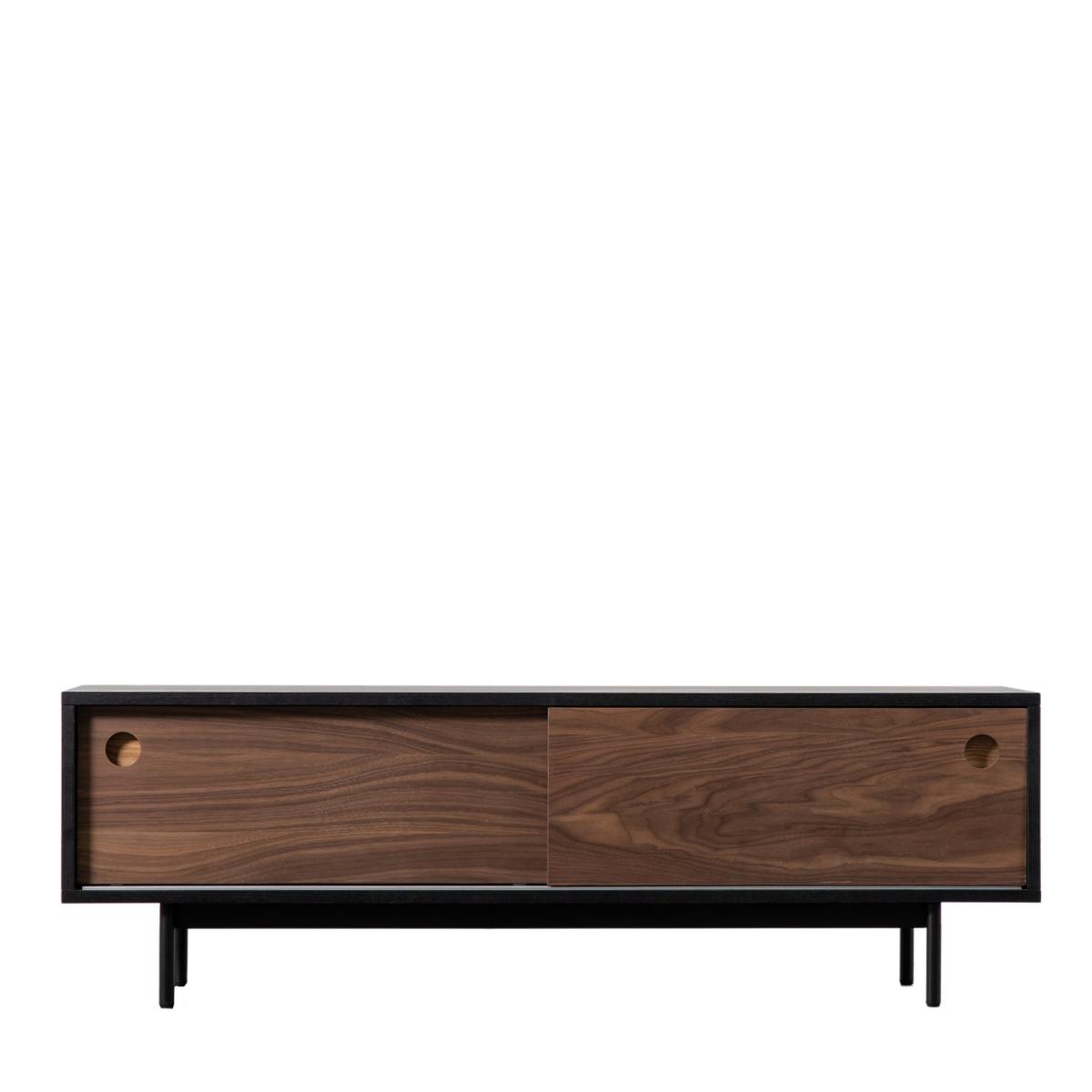 Not only will this TV stand hold your TV, but it also provides extra storage space for your living room. The doors are finished with circular wooden handles. The oak frame has been finished with a black stained finish. Full assembly is required, but do not worry! Assembly is easy and all the tools you will need are supplied. Coordinating furniture pieces are available in the Turlock range.