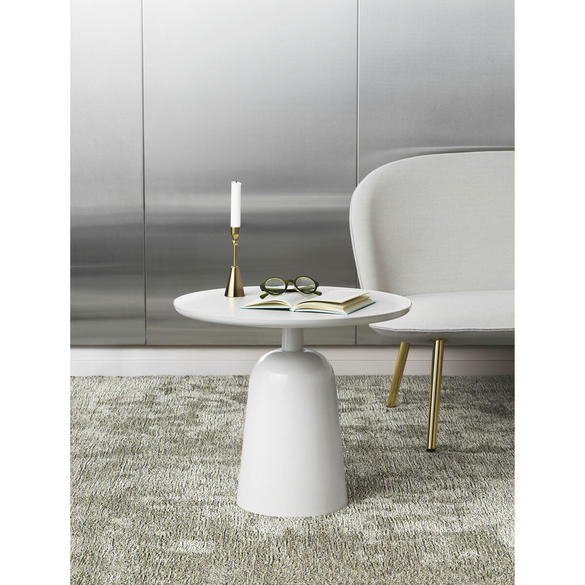 With Turn, the small side table reaches new heights! Very functional, the top can be adjusted in height to easily adapt to all your needs: coffee table for having an aperitif, eating or working on, pedestal table, bedside table or side table...You just have to turn the top to adjust its height (Height from 41.5 to 64 cm). Modularity and freedom of use perfectly adapted to our modern lives!The Turn coffee table consists of an ash plywood top and large bell-shaped steel base. Monochromatic, the top and steel structure are painted the same colour.