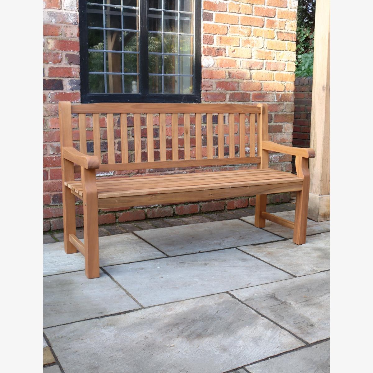 The 100% FSC Turnbury 3-seater bench adds a look of timeless elegance to any outdoor space. Made from strong 100% FSC durable acacia hardwood with its warm tones and natural beauty, the Turnbury is ideal for frequent use in any setting. Suitable for sitting with your loved one and relaxing on a summer afternoon. This bench will be sure to last as it's made from 100% FSC Plantation Acacia, providing easy maintenance, all year round. We do recommend that you treat your bench with a good quality hardwood sealer oil every 6 months to ensure the longevity of the bench.. Because we‚'re now spending more time in our gardens than ever before, it‚'s important to find comfortable, durable and stylish outdoor garden furniture seating. Benches are perhaps the most versatile option and their smaller footprint makes them ideal for more modest outdoor spaces. Where you may already have a social seating area, benches are a great option for more mellow, solitary spaces that allow you to have some peace.. Materials matter when it comes to choosing the right garden furniture bench for you and wood looks naturally appropriate outdoors. Although it‚'s heavy and may need protection from the elements, it does develop an attractive weathered finish over time. All our wooden garden furniture benches are responsibly sourced, look for Forest Stewardship Council certification, which shows that it comes from responsibly managed forests that provide environmental, social and economic benefits.. Features:. Material: 100% FSC Acacia. Colour: Natural. Easy Maintenance. Easy to assemble. Ideal for patios and grass. Solid seat, arms and back for enhanced comfort. Set Includes:. 1 x Bench. Please note: Colours may vary slightly from those shown. Variations can occur due to the natural characteristics of materials (such as wood, fabric, or rattan), as well as differences in screen resolution and lighting when viewing images.
