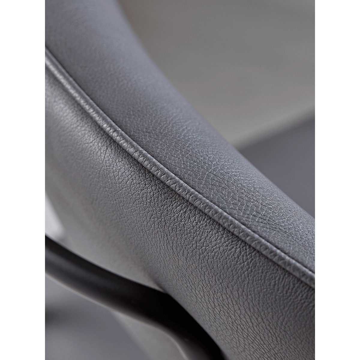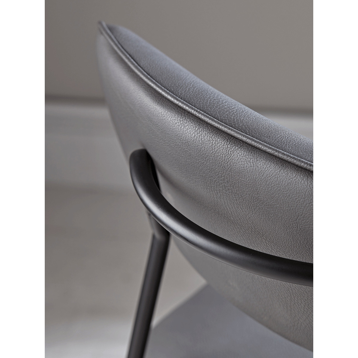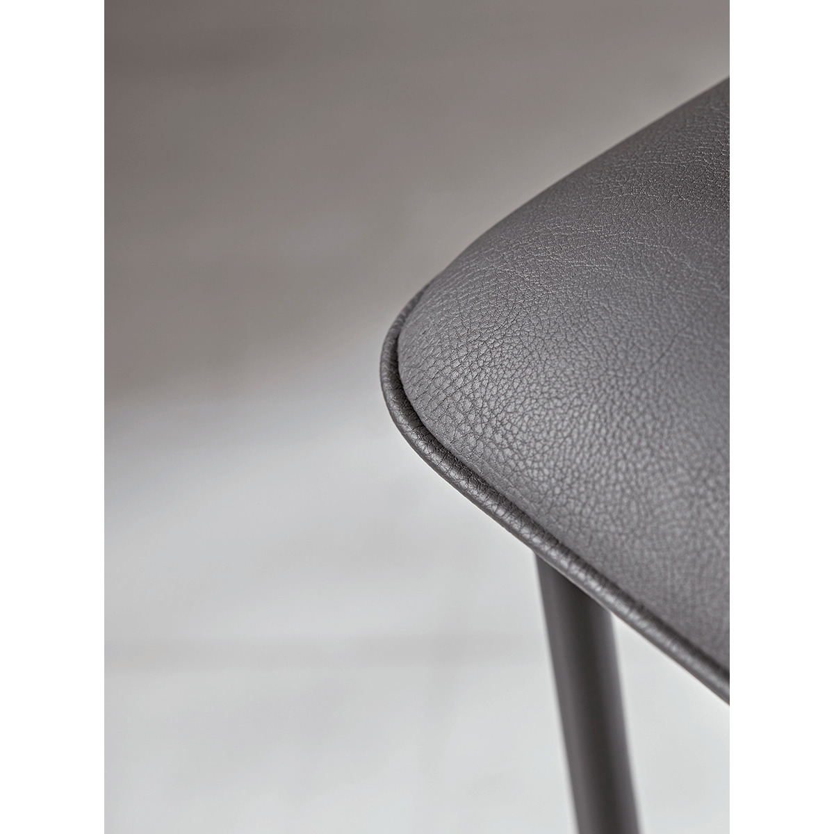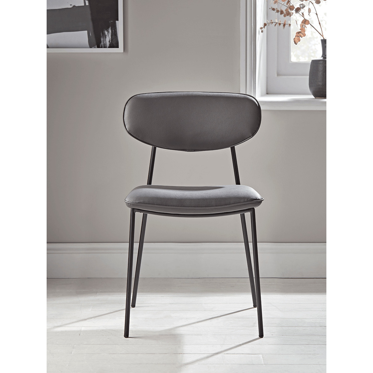 With a modern, pared back silhouette our Turner Dining Chair comes upholstered in faux leather, a comfortable seat and soft back rest. A mid century style but with a contemporary slender metal frame. Place at your dining table for a modern finish to your table, with a lighter tone to most upholstered seats, our chairs will not weigh down your look.