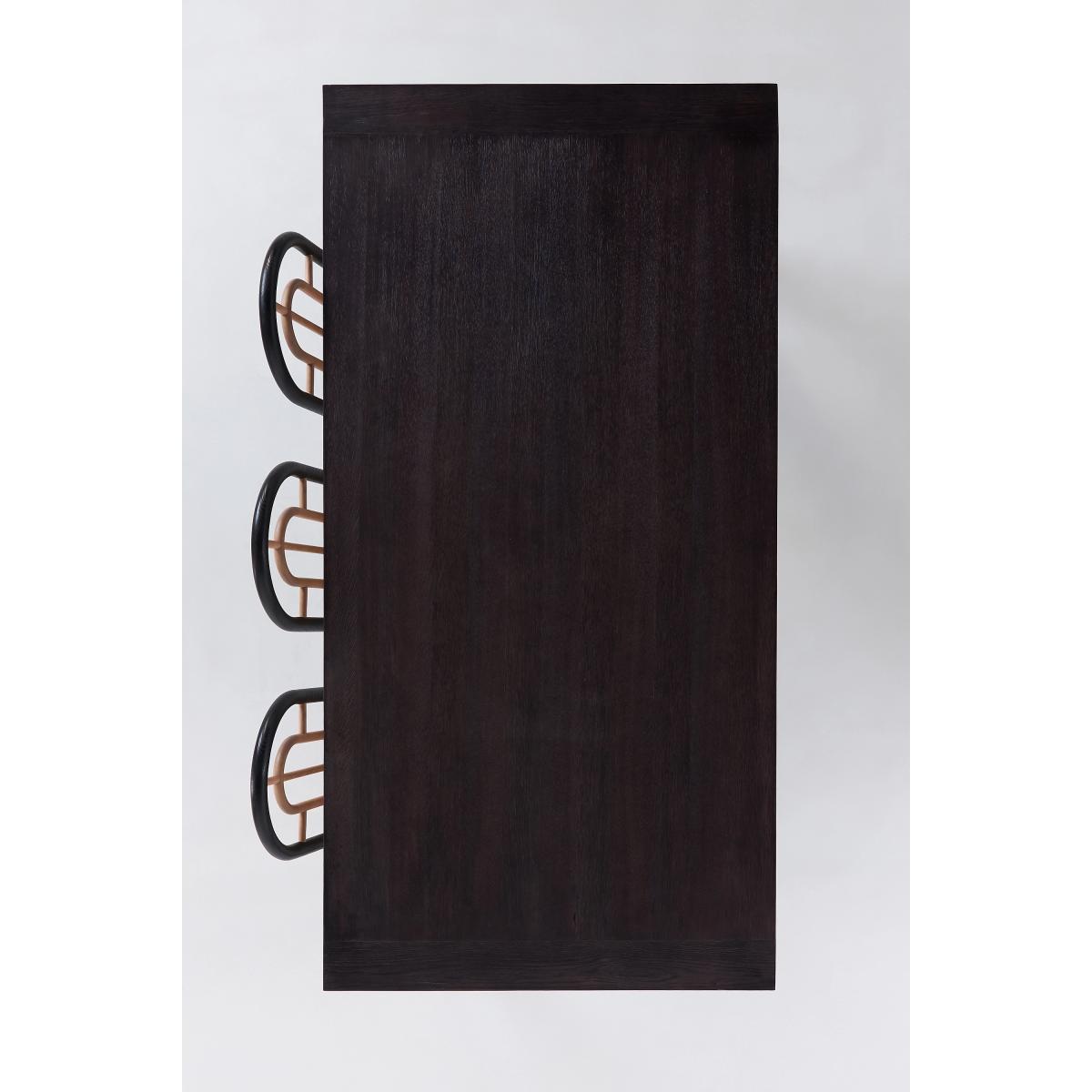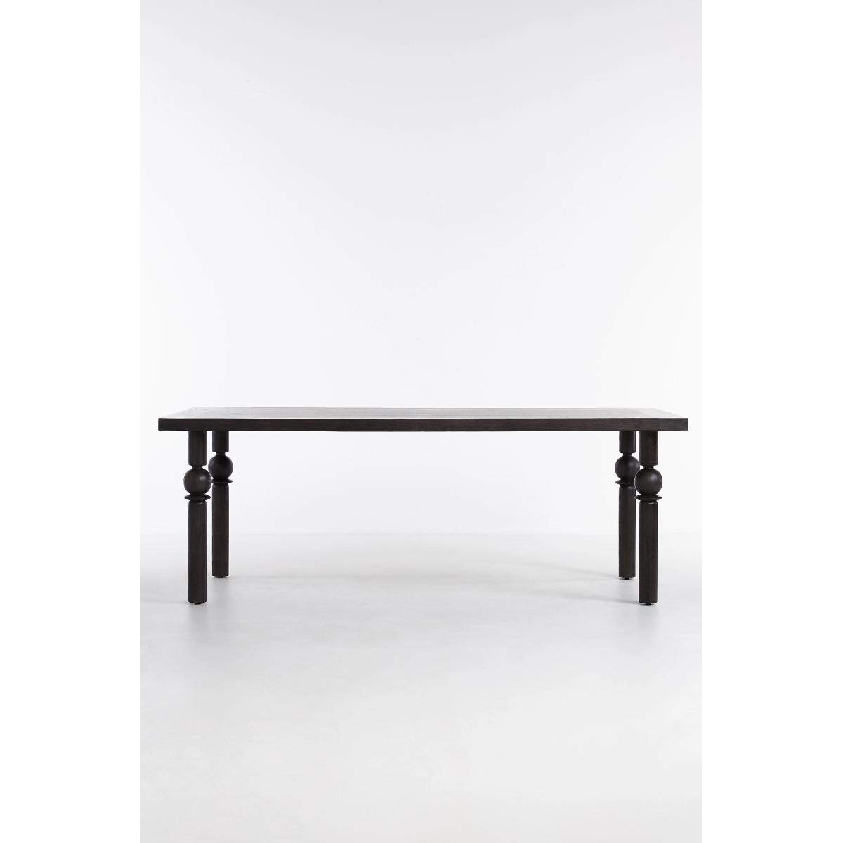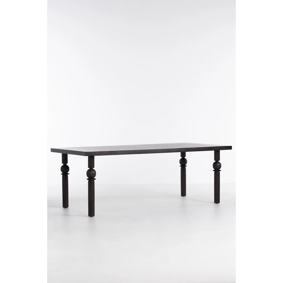 A sleek tabletop and beveled legs make this dining table a modern version of the classic, timeless style. * Oak wood and FSC-certified veneer with matte black finish * Comfortably sits eight people * Wipe clean with soft cloth. Avoid using chemical cleaners * Some assembly required * Imported
