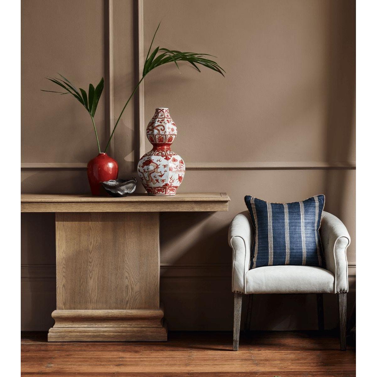 Joining our Turnus Range is this hand-painted weathered oak console table. It features the same plinth detail that’s carried across the range giving it the stately style that inspired its name – Turnus being the legendary Roman warrior from Virgil’s Aeneid. The tabletop features a curving ogee edge which gives its rectangular silhouette a gentle finish.