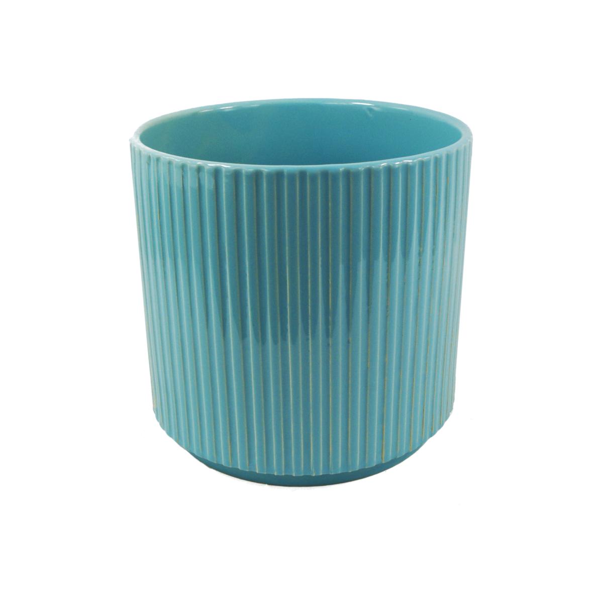 Turquoise Blue Ribbed Ceramic Planter Plant Pot - Blue
