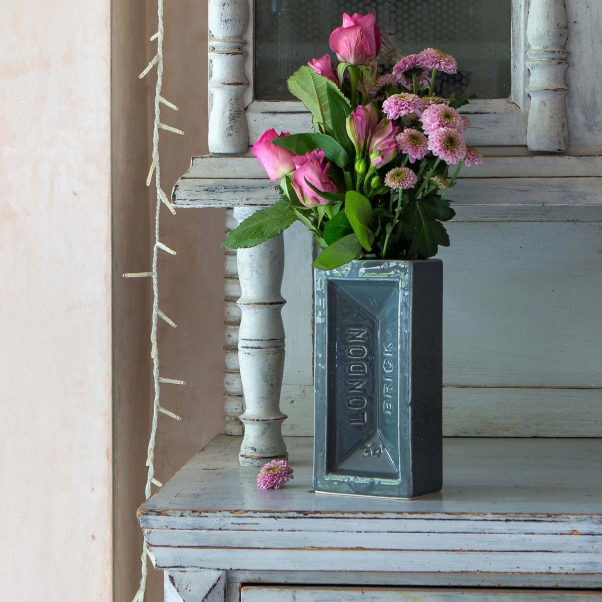 Handcrafted from glazed ceramic earthenware, these unique brick vases exude urban style. Place on a tabletop and fill with an assortment of seasonal blooms for a burst of colour.