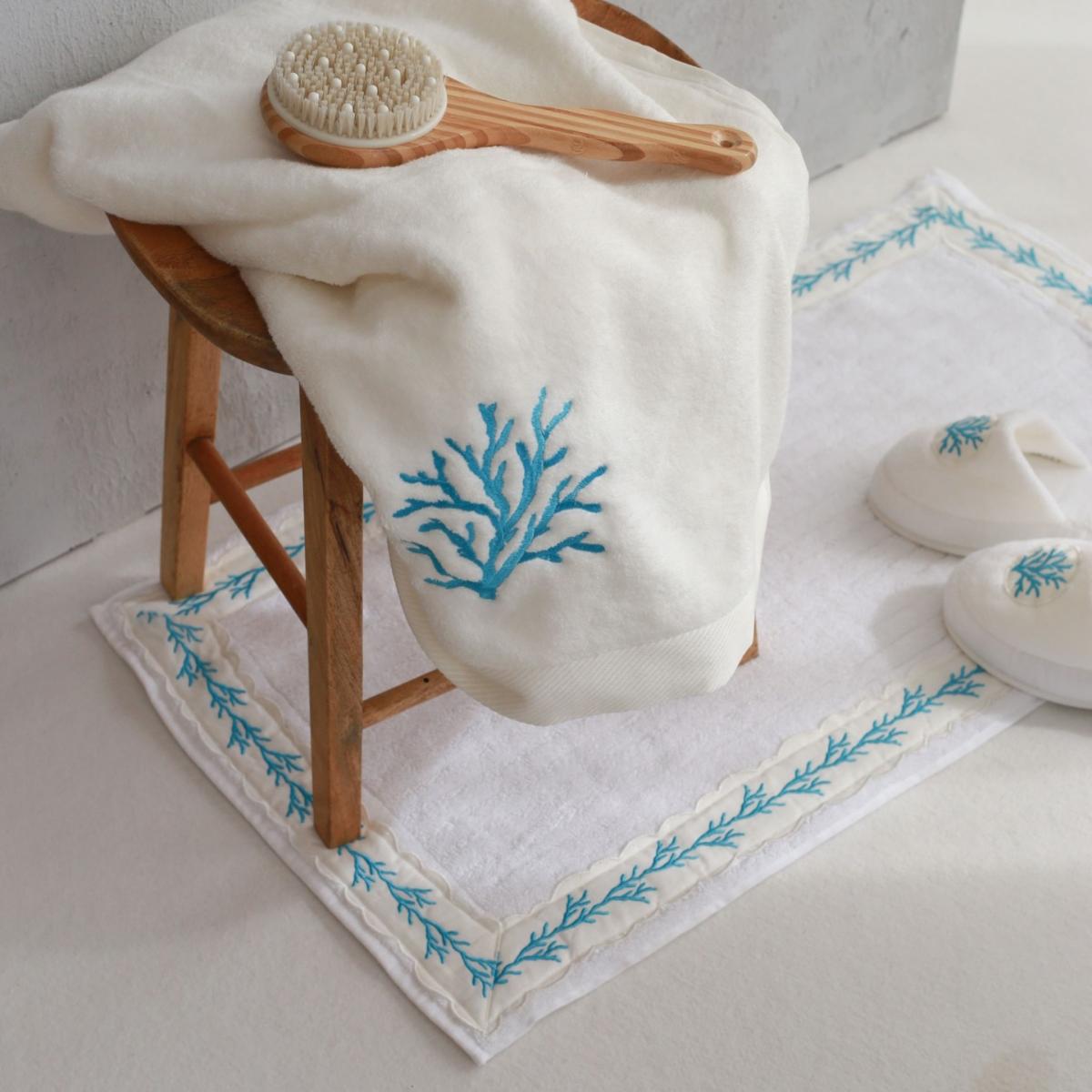 Turquoise Coral Cotton Bath Mat Km Home Collection