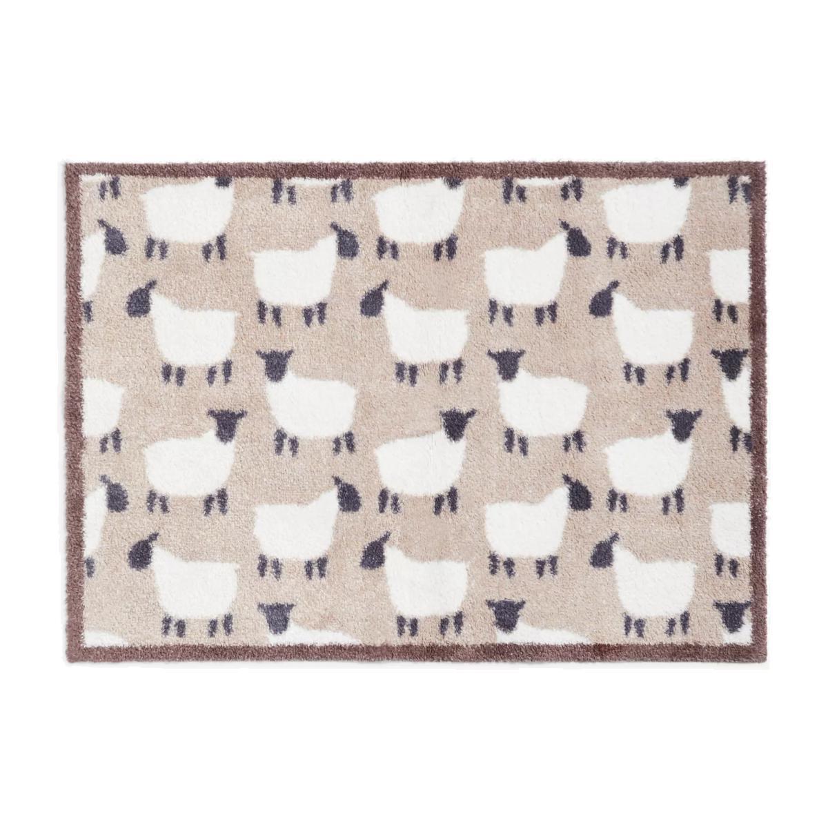 Made in the UK Greet your guests with a baa with the Turtle Mat Sheep Flock Door Mat. With a sturdy rubber base, this cotton-rich door mat is almost as soft and fluffy as the adorable sheep on it.