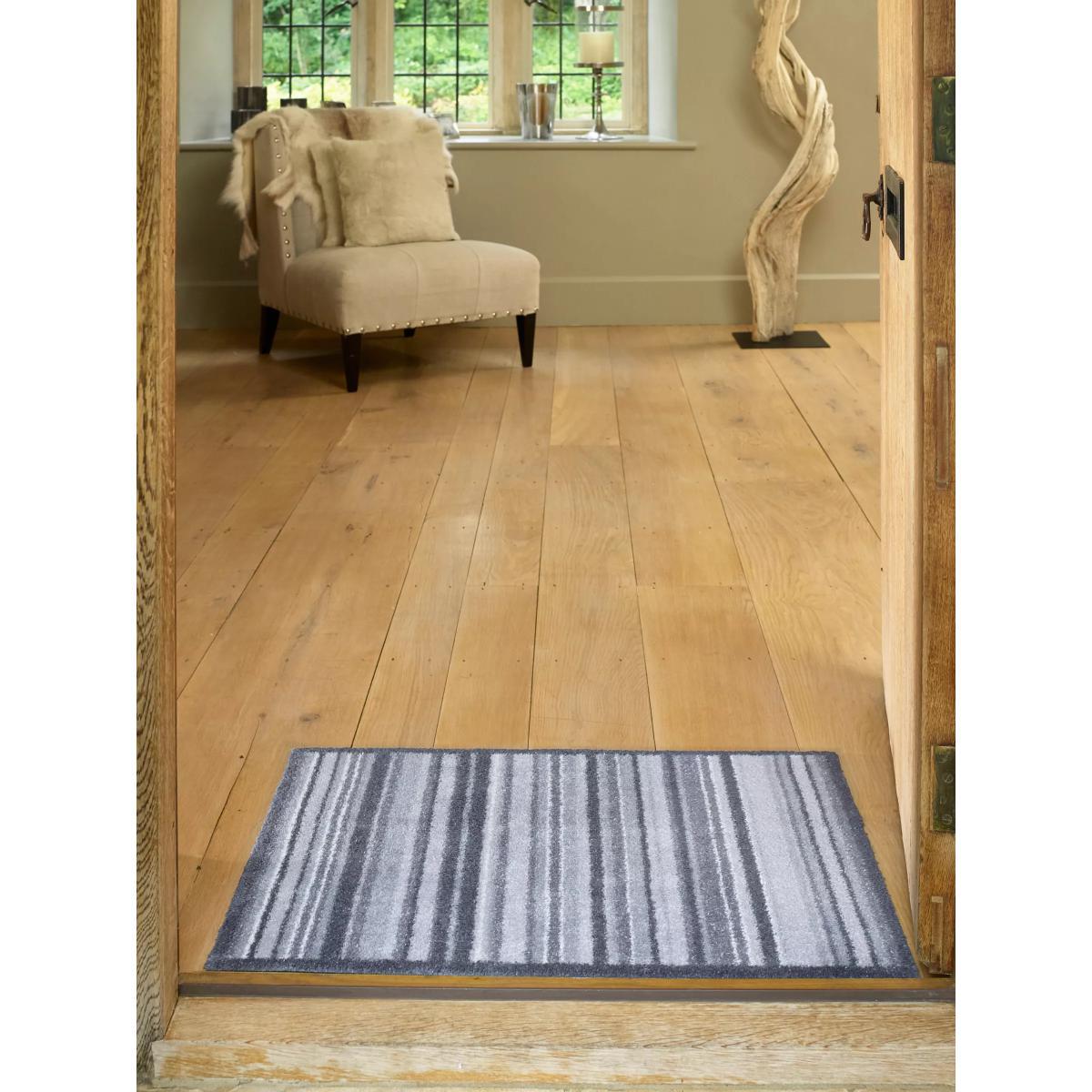 Made in the UK In a classic blend of light and dark grey colour tones, this door mat is sure to earn its stripes in keeping your home cleaner for longer with its dirt-trapping cotton tufts. Made in the UK, this door mat will help to protect your floors from dirty footprints, keeping your home cleaner for longer. Super absorbent cotton tufts instantly trap dirt, dust and wetness plus it has non-damaging, anti-stain, anti-slip backing.