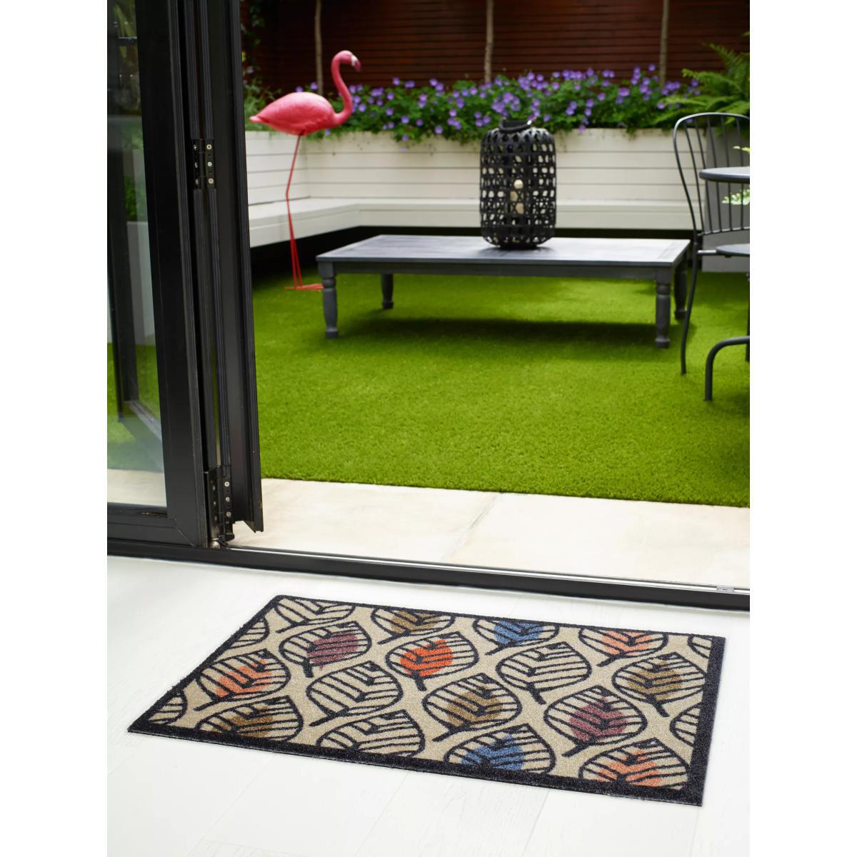 I love this leaf stencil doormat because it adds a contemporary, yet natural touch to your entrance. Its colourful leaf design works well in both modern and traditional homes, providing a welcoming look without being overly formal. It’s particularly effective in neutral or muted interiors, where it can inject a subtle pop of colour, but it also pairs nicely with more vibrant décor for a fun, layered effect. Practical styling tips include placing it in front of a sleek, minimalist door or alongside rustic and vintage features for contrast. Because it's designed to trap dirt, it’s a great choice for high traffic entrances, and layering it with a simple door wreath or side planters can help complete a polished, inviting look.