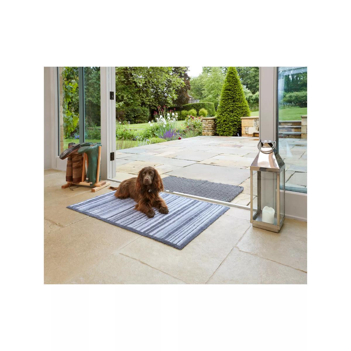 Made in the UK with a classic stripe pattern, this door mat will blend well with warm wood and limestone floors whilst working hard to trap dirt in its absorbent cotton tufts. Super absorbent cotton tufts instantly trap dirt, dust and wetness and it has non-damaging, anti-stain, anti-slip backing.