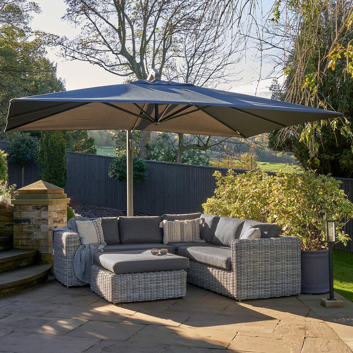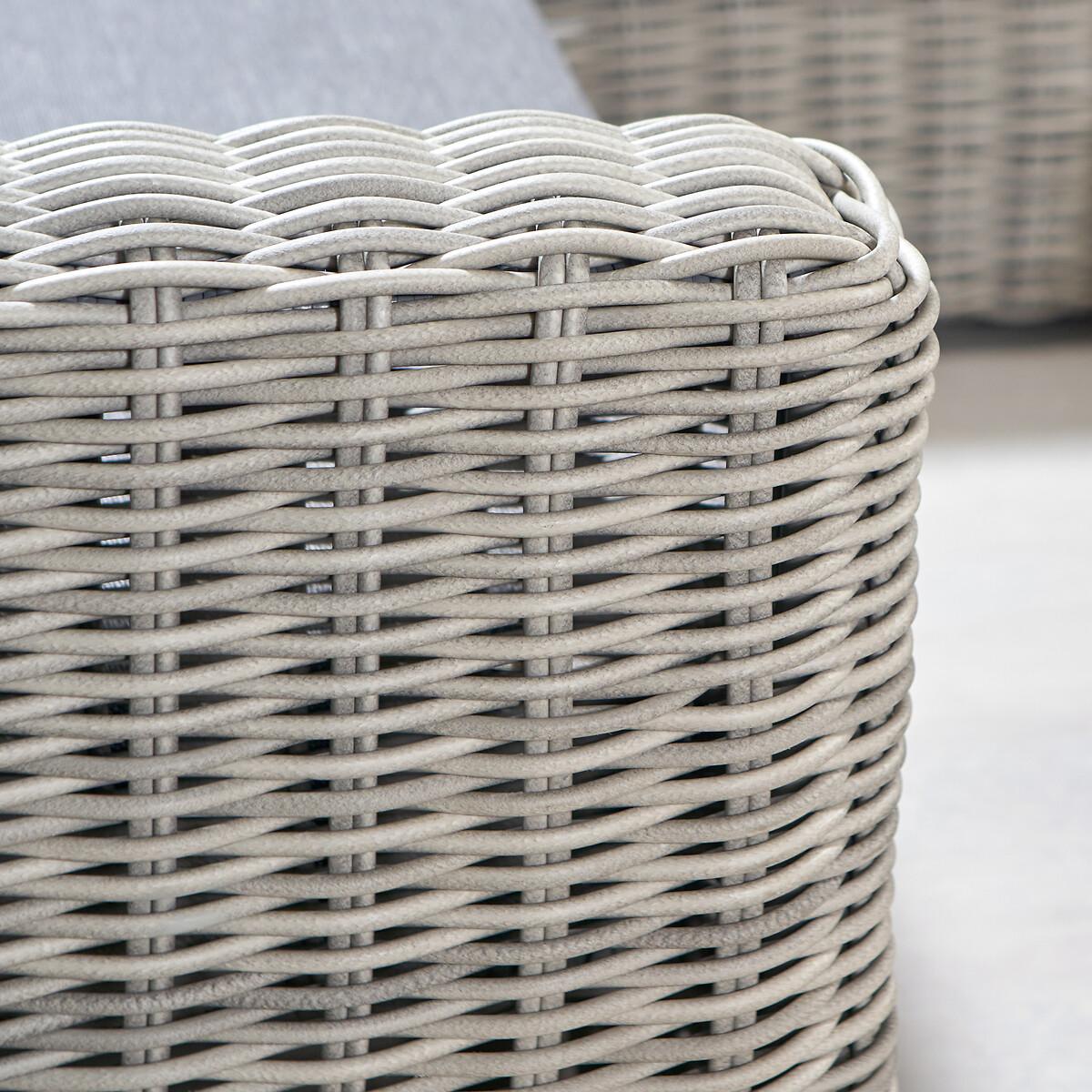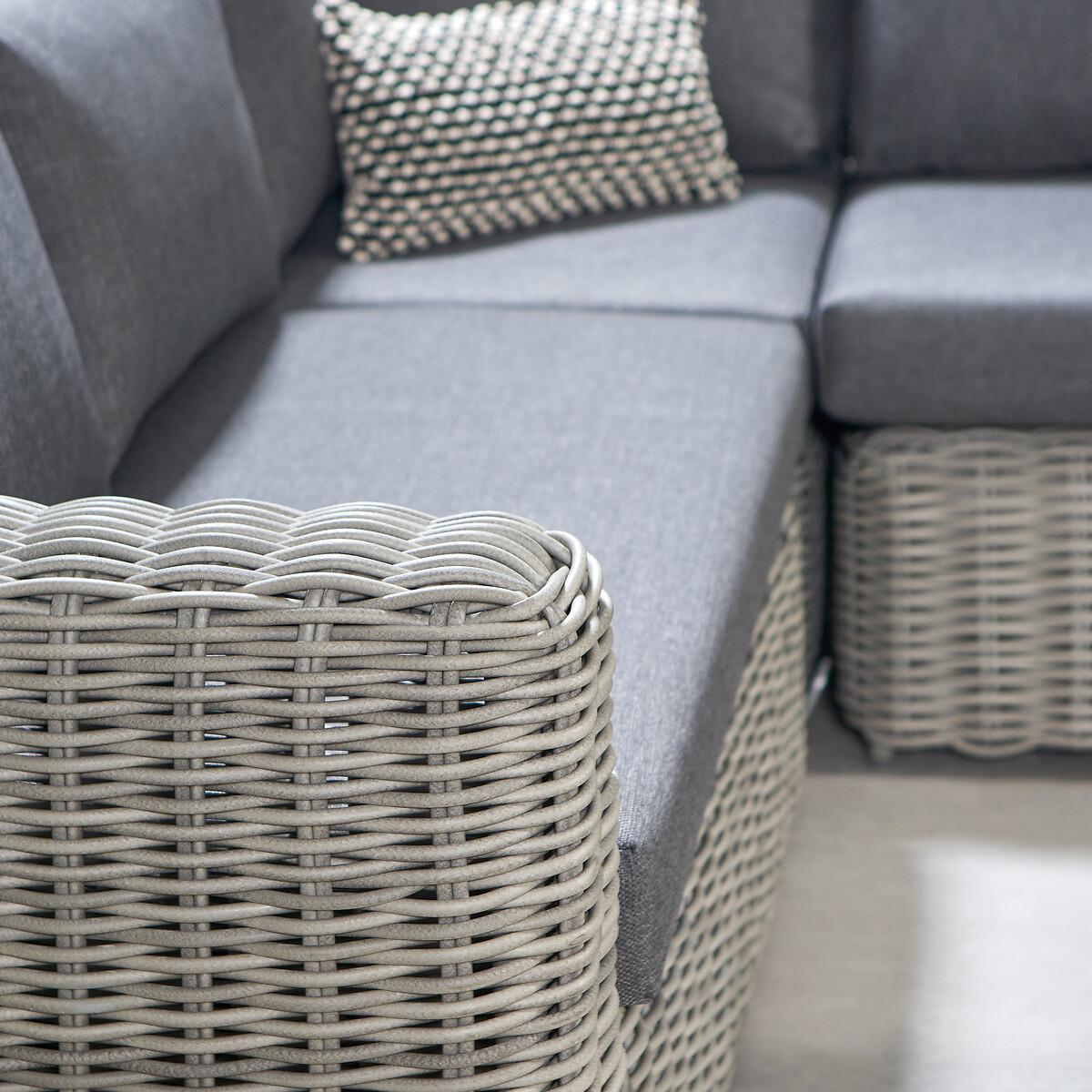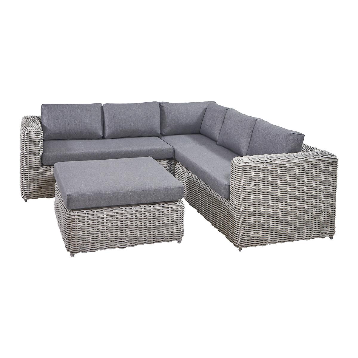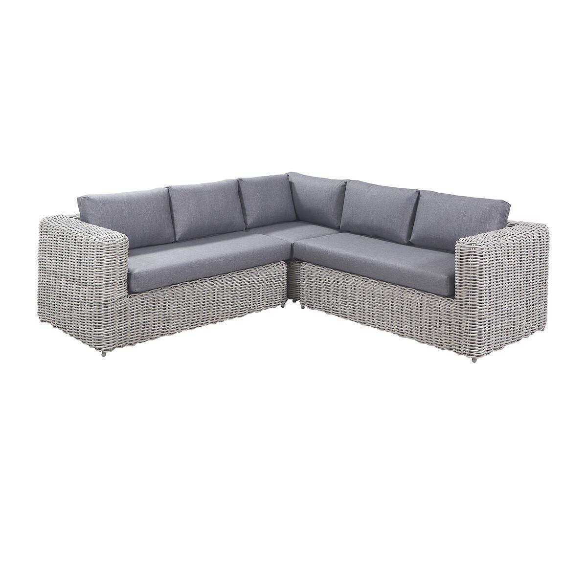 Please note: this product cannot be delivered to all Offshore Islands, Northern Ireland or Republic of Ireland - postcodes starting with; AB, BT, DD, IV, KW1-14, PA21-38, PH, TR17-27 & ALL ROI.The Tuscany Corner Set in stylish grey offers an eye-catching double-skinned weave and a low back seating design for the ultimate lounging experience. It comprises of a left arm sofa, a right arm sofa, a corner piece and a central low table which also can be used as a pouffe, just right for those slow mornings sitting in the sunshine with a coffee. The seating set is made from synthetic double-skinned rattan weave which ensures perfect contemporary styling and a durable weather resistant finish. This outdoor set also features a powder-coated aluminium frame, which ensures its high-quality and robustness. The season proof, fire retardant cushions in a stylish grey, are water repellent, allowing the water to run off the cushion. In the rare event that any moisture does penetrate the outer fabric there is a ventilation section in each cushion which allows it disperse. We suggest using a cover to protect your set while not in use to maintain its quality. Product Dimensions:Sofa: 253x253x89cm. Table: 98x98x50cm Parcel 1 Packaged Dimensions: 182cmx111cmx99cm Weight: 100kg Parcel 2 Packaged Dimensions: 126cmx102cmx102cm Weight: 59kg. Composition: PU wicker 50%, Olefin 30%, Aluminium 20%Please note this item is a large piece of furniture that will require some self assembly. Please ensure you have space to receive delivery. This product will be dispatched by one of our trusted suppliers. You’ll be contacted by their selected courier about your delivery. PACIF01
