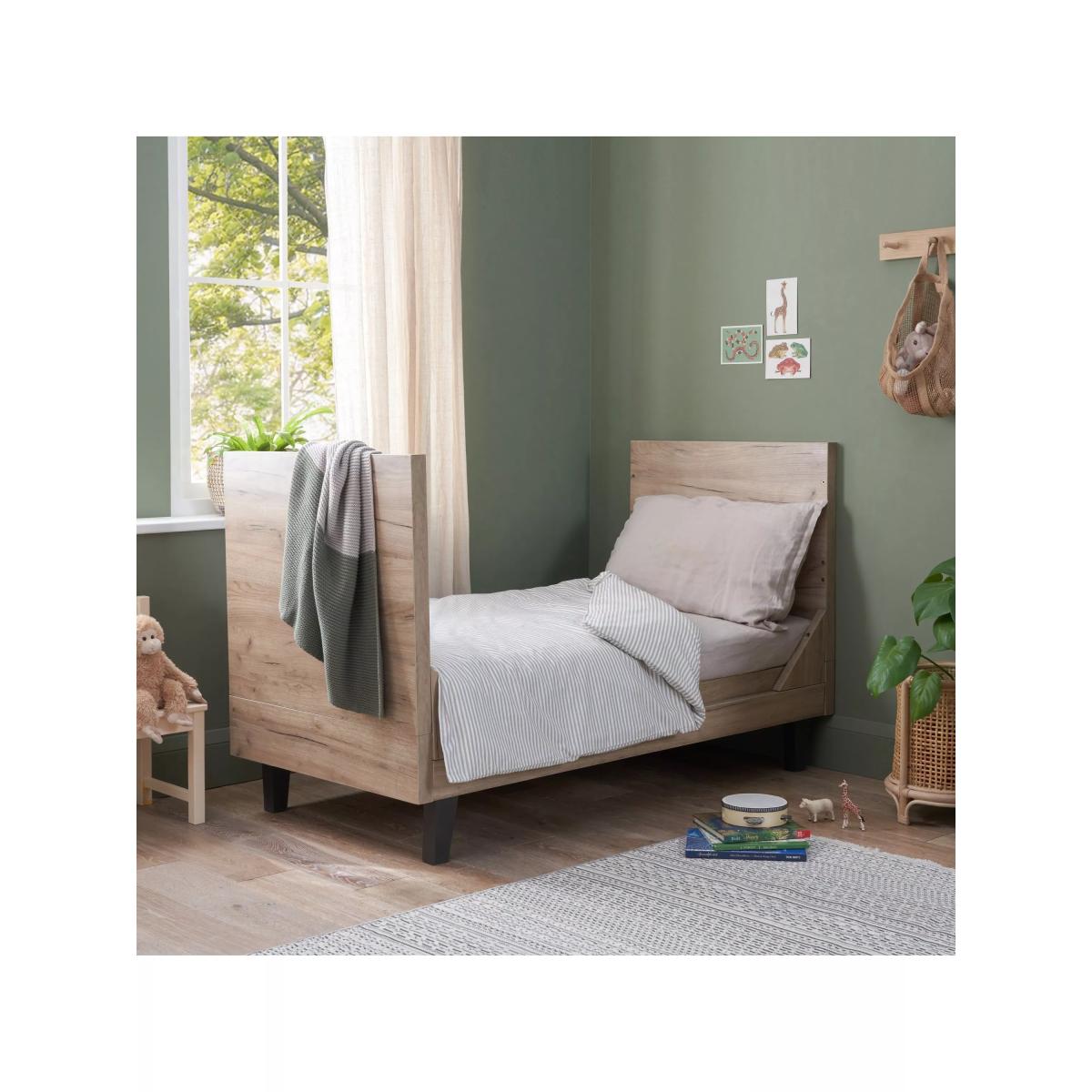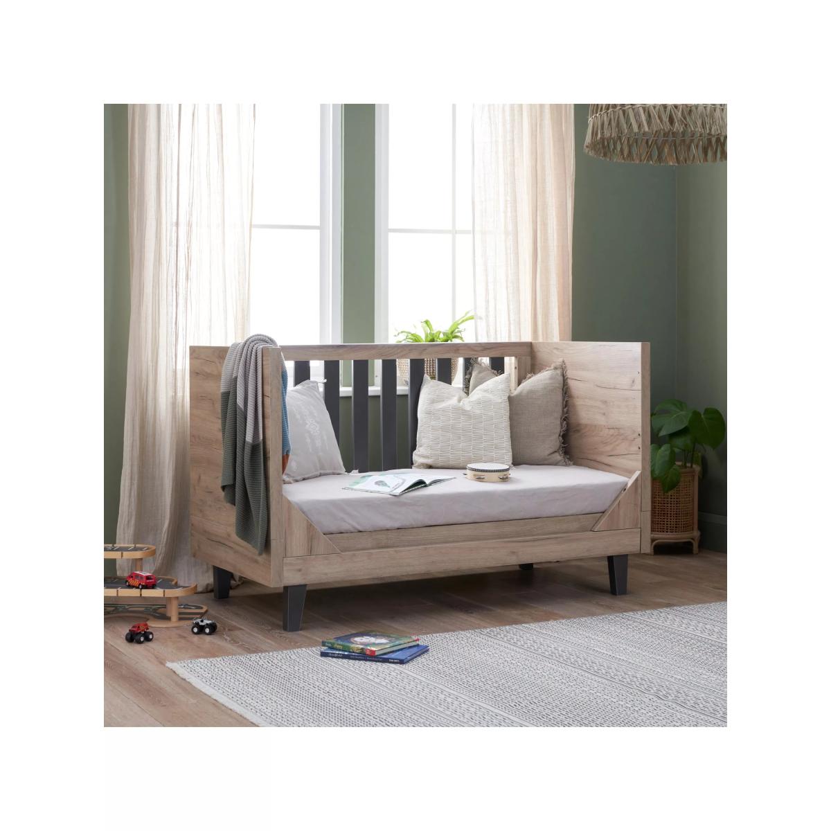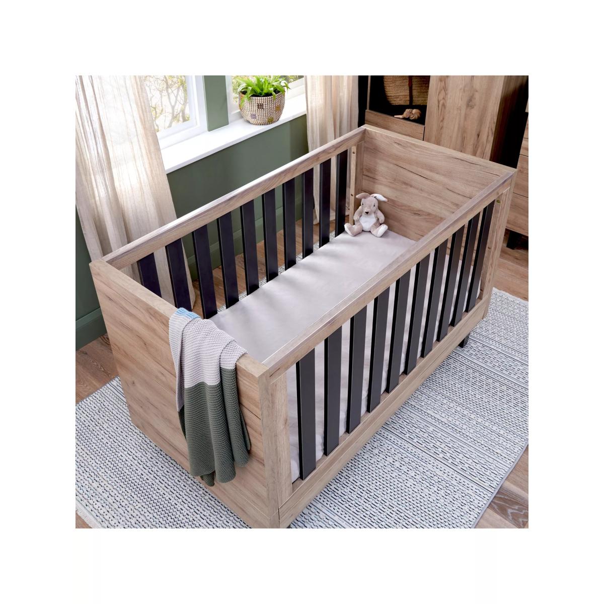 I really like this cotbed because of its versatile, Scandinavian-inspired design that blends natural wood tones with a touch of sleek black, making it easy to incorporate into both modern and traditional nurseries. The oak and slate finish adds warmth and sophistication, making it a great focal piece. For styling, I’d keep the surrounding decor minimal with neutral or pastel bedding to let the natural wood shine, while adding texture through soft blankets or a patterned rug. It works well in nursery schemes that favour earthy, muted tones or monochrome palettes, creating a calm and cosy environment for baby. Practical tips include pairing it with storage solutions underneath to keep essentials close and choosing bedding that complements the colour accents without overpowering the clean lines.