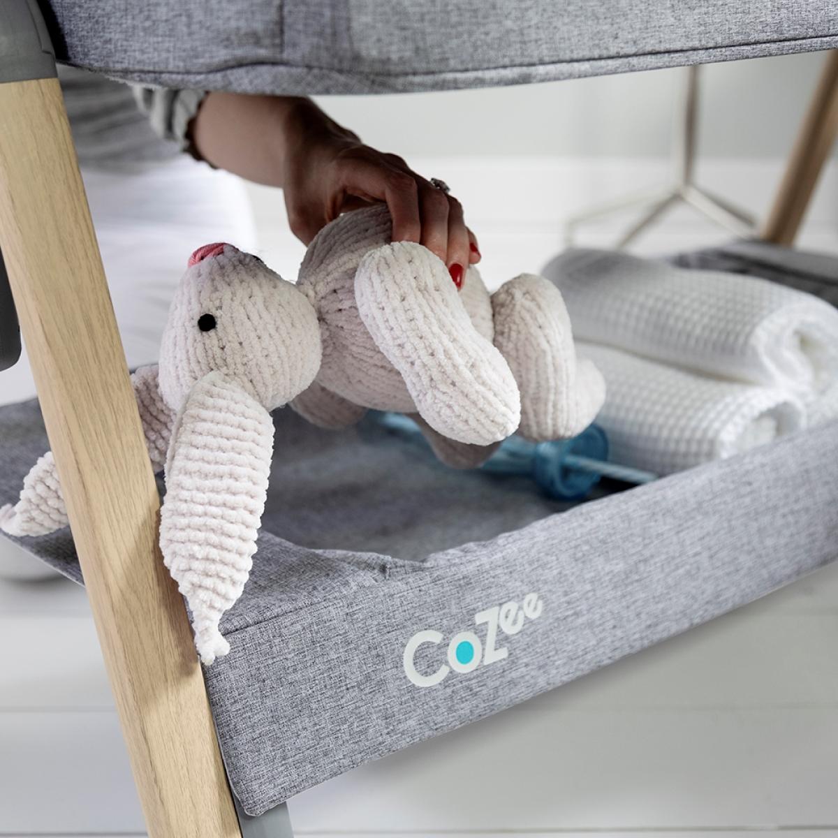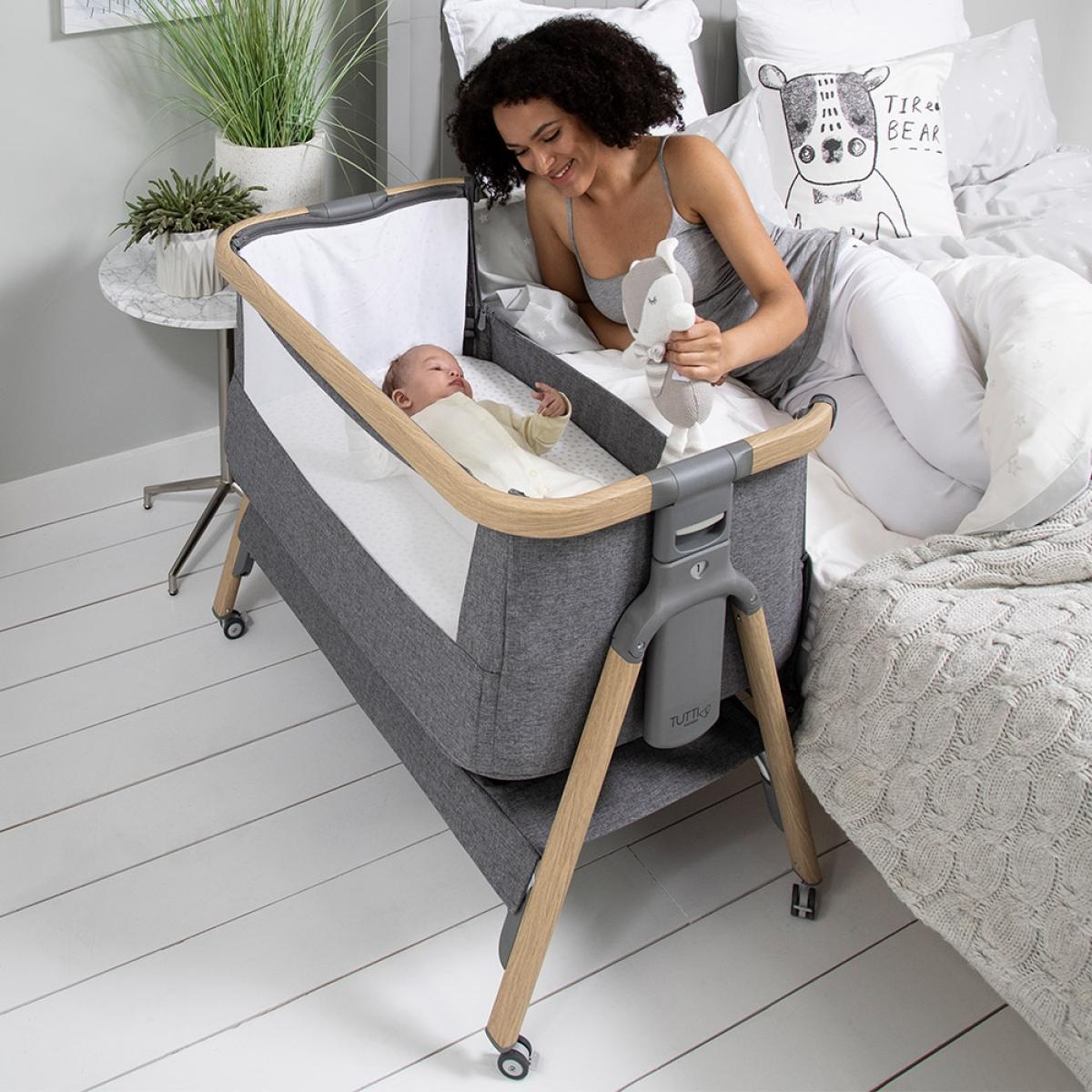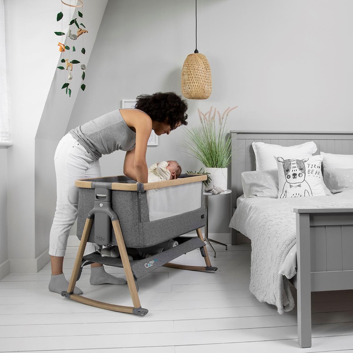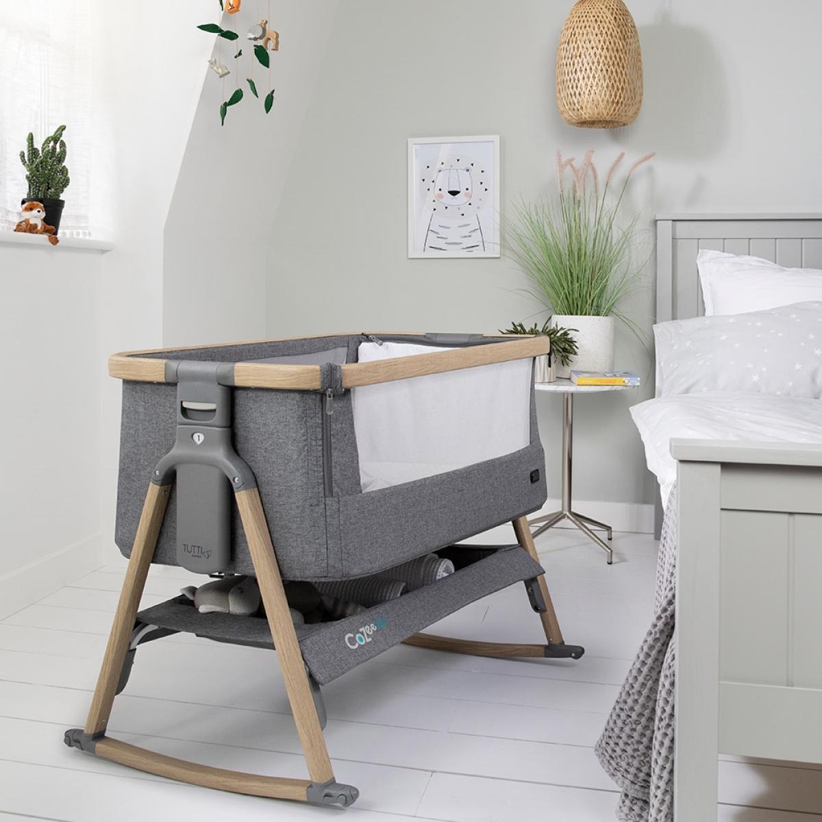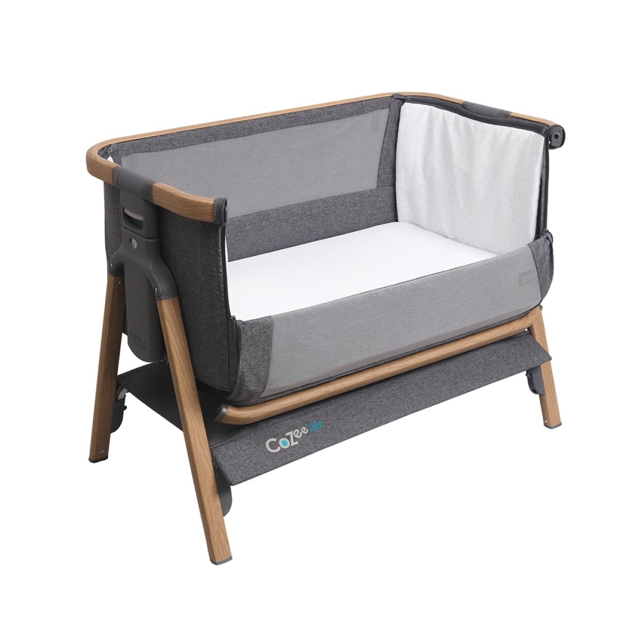 Rock-a-bye baby. Your little one to sleep, with the Co Zee Air Bedside Crib from Tutti Bambini. Stylish, comfortable and portable, perfect for any home or holiday getaway with 6 adjustable height features, making it suitable for any occasion. Create a special bond whilst sleeping side by side or use it as a stand-alone crib to enjoy a bit of 'me time' and if your bambino is all rocked out, detach the bars and flip out the feet to stop that rocking motion. Featuring 2 breathable mesh windows, a spacer fabric mattress that helps to regulate their body temperature and a double-layered twill curtain for the colder months. It's perfect for all seasons! Including an under cot shelf, ideal for holding all essentials; whether that be their favourite toy or a new change of clothes, you'll be sure to find it useful when those little hungry cries for food and cuddles start. No stress if they have an accident, zip off the fabric lining and add to your next washing load! Relax, be prepared and let the fun-filled adventures begin, watching as they grow!.