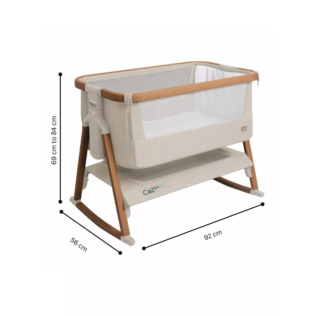 The Co Zee Air bedside crib offers the functionality you need to sleep safely, side-by-side with your baby from birth until approximately six months. You can easily adjust the height with 6 different height positions and can even position one side higher than the other to help relieve the symptoms of reflux and congestion. The practical storage shelf gives you a handy place to stow essentials, right there, where you need them. When not using in bedside mode you can easily lock the drop-side into place and fasten the zips to create a standalone crib. For this item, our supplier will provide a room of choice delivery service.