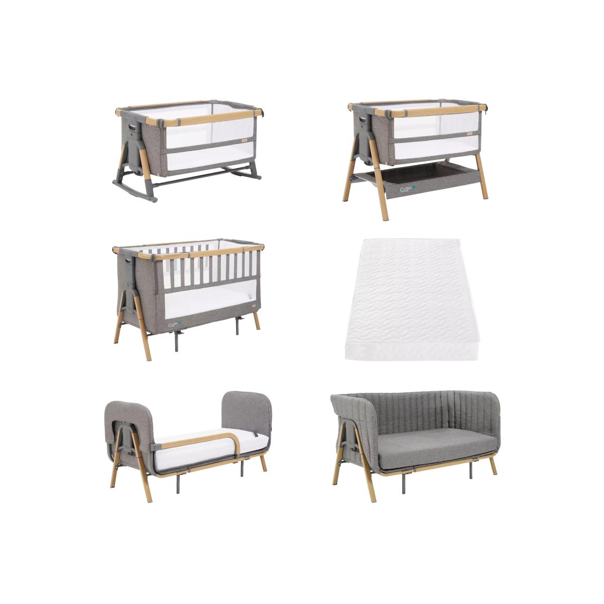 Stylish and practical, the Co Zee XL was designed to grow with your baby, providing a reliable and comfortable sleeping solution suitable from birth up until the age of 3. Once the child has outgrown the last sleeping mode (toddler bed), the final conversion into a sofa will provide a comfy social space for years to come. The complete package includes the bedside crib with mattress and travel bag, all the accessories needed for the bassinet, cot, junior bed and sofa modes, and a sprung cot mattress (suitable for the junior bed and sofa as well). For this item, our supplier will provide a room of choice delivery service.