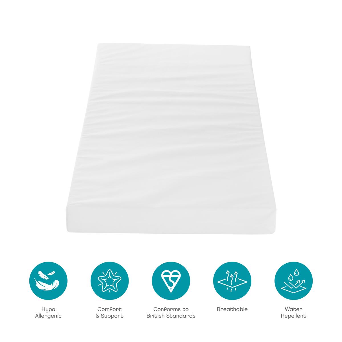 * A comfortable and supportive mattress ensuring a peaceful nights sleep* Comes with removable and machine washable cover* Made from 100% eco-friendly breathable polyester fibre to aid airflow* Fully breathable and hypoallergenic water resistant cover* Available with the Tutti Bambini Extended 3 Year Guarantee This Tutti Bambini Eco Fibre Deluxe Cot Mattress guarantees a comfortable and supportive sleep for your baby. Made from 100% eco-friendly breathable polyester fibre, it aids airflow and is fully breathable and hypoallergenic. The mattress comes with a removable and machine washable cover, and with the Tutti Bambini Extended 3 Year Guarantee, it provides a trustworthy option for parents seeking an eco-conscious choice. Need to throw out your old mattress first? View our information on [mattress recycling and collections](https://www. dunelm. com/info/about/mattress-and-furniture-recycling).