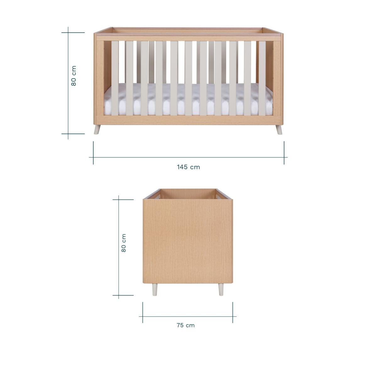 * Full size cot bed has 3 mattress height positions to grow with your baby* Bevelled edges provide a touch of stytle, and a quality feel, while the integral teething rails protect your baby and prevent damage to the furniture* Once the Cot is outgrown (at around 2 years) it converts easily to a toddler bed for use from around 2 - 4 years, and then converts to a sofa or day bed for use in the nursery or playroom* Chest Changer has 3 spacious drawers providing plent of storage space, and the changing unit on top of the chest can be removed when no longer required, without leaving marks on the furniture* Internal drawer dimensions H10 x W71.5 x D38.5cm* Double Wardrobe has ample space, with 2 adjustable shelves, and hanging rail Crafted with elegance and functionality in mind, the Tutti Bambini Fika 3 Piece Nursery Furniture Set offers a minimalist yet versatile solution for your nursery. With its convertible cot bed, spacious chest changer, and practical wardrobe, it seamlessly combines style with practicality, ensuring a serene and organised space for your little one.