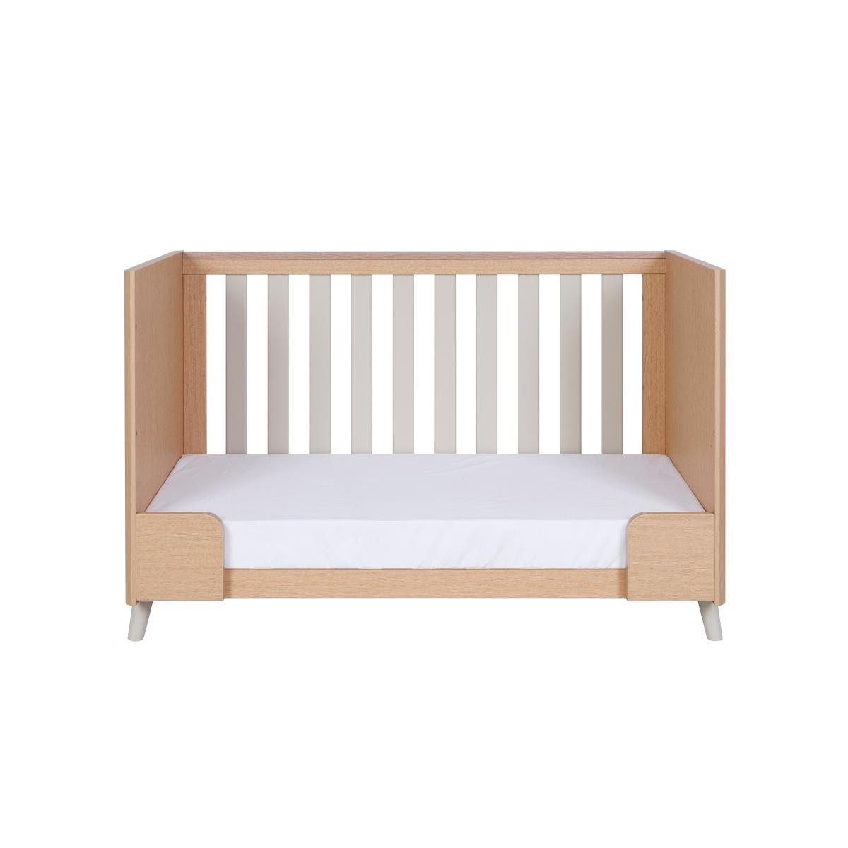 * Space saving cot ideal for a compact nursery* Bevelled edges provide a touch of stytle, and a quality feel* Teething rails protect your baby while teething, and prevent damage to the furniture* Cot has 3 different mattress height positions to grow with your baby* Once the Cot is outgrown (at around 2 years) it converts easily to a toddler bed for use from around 2 - 4 years* As your toddler transitions to a full size bed, the Fika Mini Cot can be converted to a sofa or day bed, for use in the nursery or playroom, allowing extended use for years to come Transform your compact nursery with the Tutti Bambini Fika Mini Cot Bed, blending modern simplicity with space-saving design. Enjoy the versatility of adjustable mattress heights and seamless conversion into a toddler bed or sofa, ensuring years of use in your nursery or playroom.
