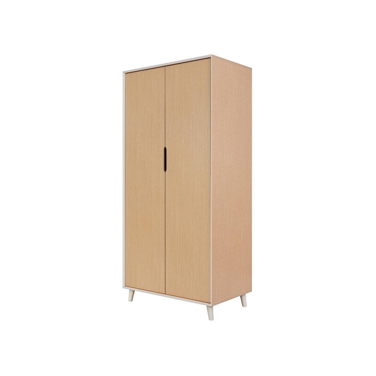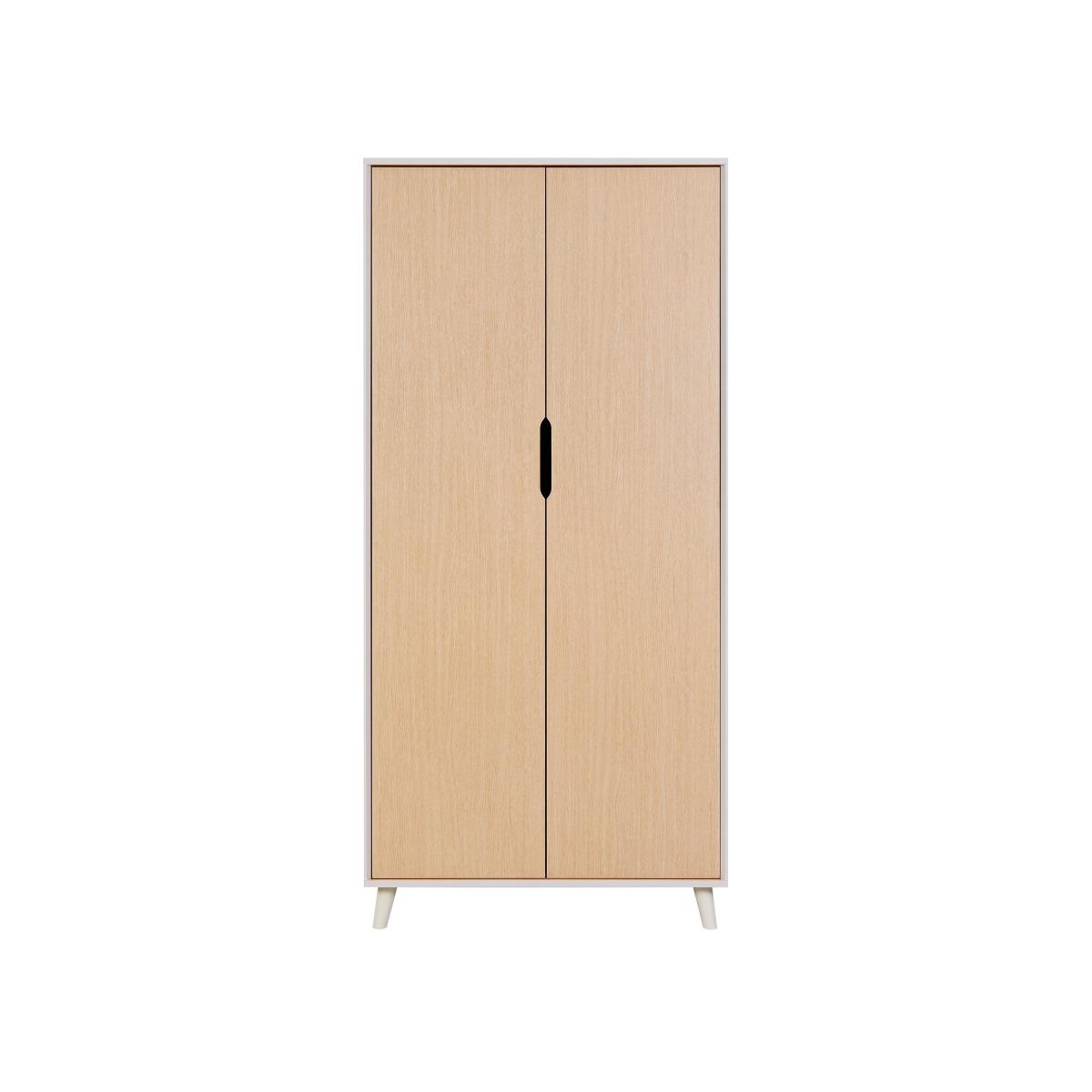 * Practical and minimalist Scandinavian design* Spacious interior for clothes and accessories* Full-length hanging rail* Two convenient shelves on the top and bottom* Child-friendly outline with bevelled edges* Cut out door handles* Elegantly sprayed legs Meet the Tutti Bambini Fika Wardrobe, a minimalist yet functional addition to any nursery. With its spacious interior, hanging rail, and convenient shelves, it provides ample storage for clothes and accessories while maintaining a sleek and contemporary aesthetic.