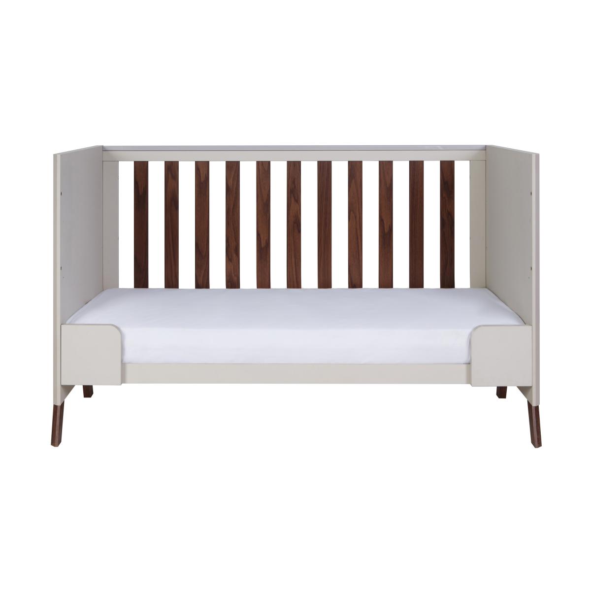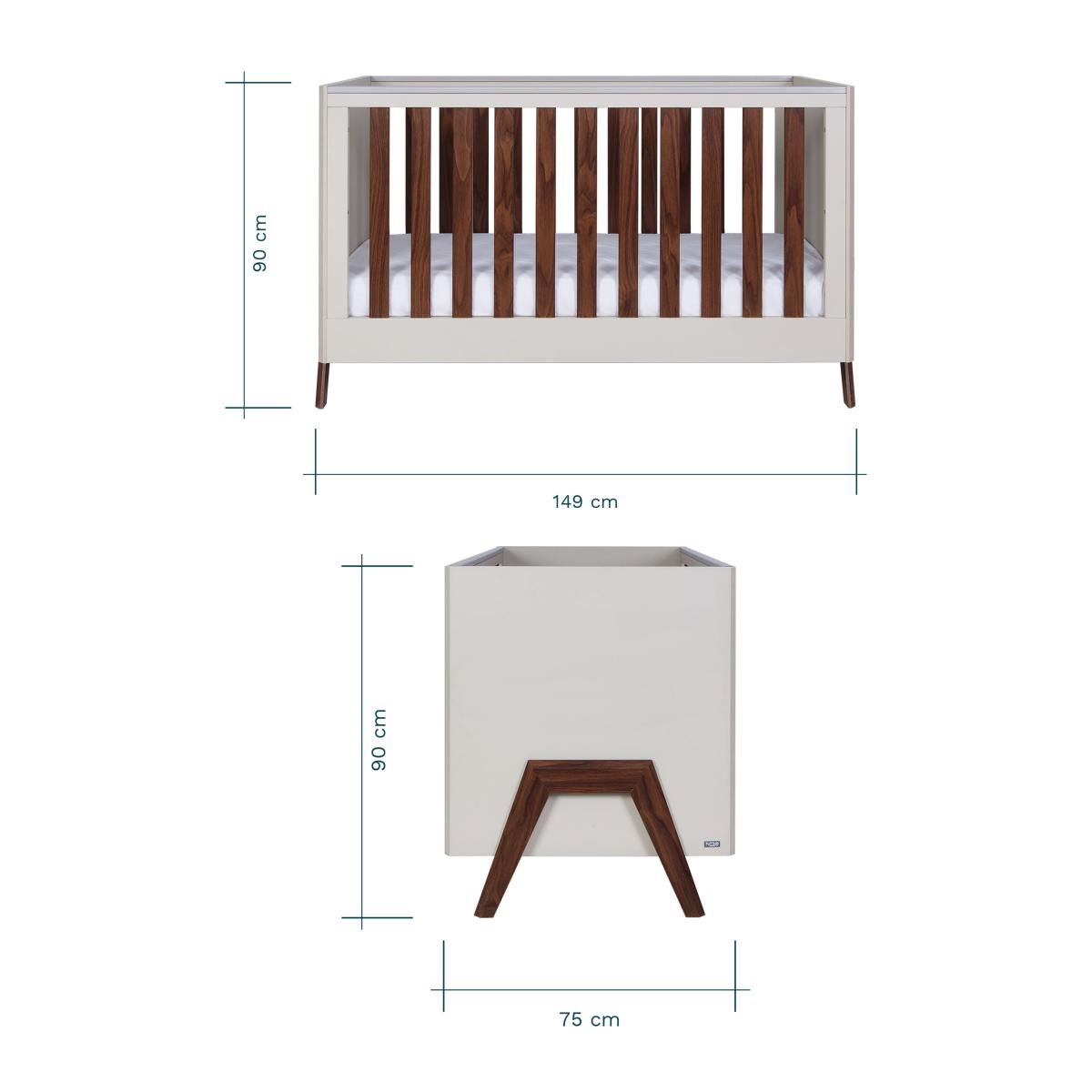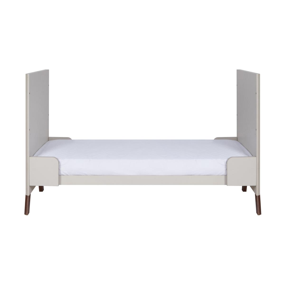 * Full size cot bed with slatted sides and solid ends* Bevelled edges provide a touch of stytle, and a quality feel* Teething rails protect your baby while teething, and prevent damage to the furniture* Cot has 3 different mattress height positions to grow with your baby* Once the Cot is outgrown (at around 2 years) it converts easily to a toddler bed for use from around 2 - 4 years* As your toddler transitions to a full size bed, the Fuori Cot can be converted to a sofa or day bed, for use in the nursery or playroom, allowing extended use for years to come Elevate your nursery with the Tutti Bambini Fuori Cot Bed, a sleek and contemporary masterpiece designed for both comfort and style. Featuring exposed legs and bevelled edges, this cot bed seamlessly grows with your child, effortlessly transforming into a toddler bed or sofa for extended use.