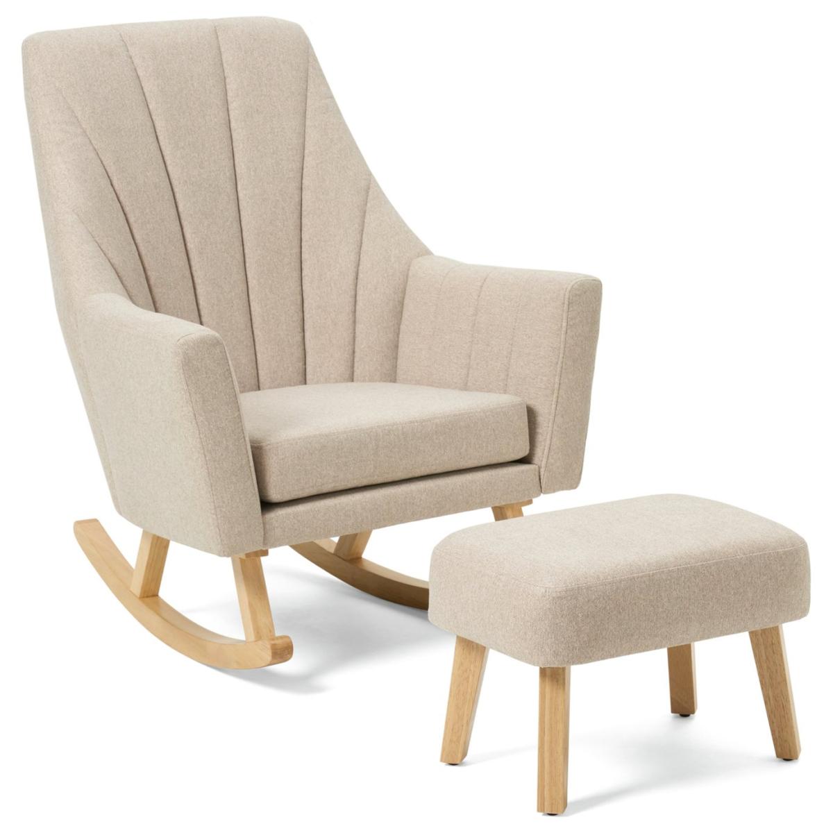 Contemporary and versatile, the Tutti Bambini Jonah rocking chair set in Stone features an ergonomic design to provide the back and arm support needed to find the optimum feeding position for you and baby. Relax, unwind, and prop your feet up after a long day on the additional matching footstool included. Made from the finest New Zealand Pine and soft brushed cotton fabric, it exudes quality and style. Scotchguard protects the fabric, and with the Tutti Bambini 3 Year Guarantee, this chair is a reliable choice for your nursery. Winner of Project Baby Awards 2023 - Silver. Stylish and ergonomic design. Well padded deep seat with high backrest and wide armrest. Offers comfy and ergonomic position for mother and baby. Soft touch brushed fabric with Scotchguard layer for extra protection. Includes colour matching Footstool. General information: Weight 15.5kg. Size H98, W76, D93cm. Suitable from birth. Package Dimensions: Package 1 dimensions: H39, W74, D89cm. Package 1 weight: 24.7kg. General information: Manufacturer's 3 year when registering online guarantee.
