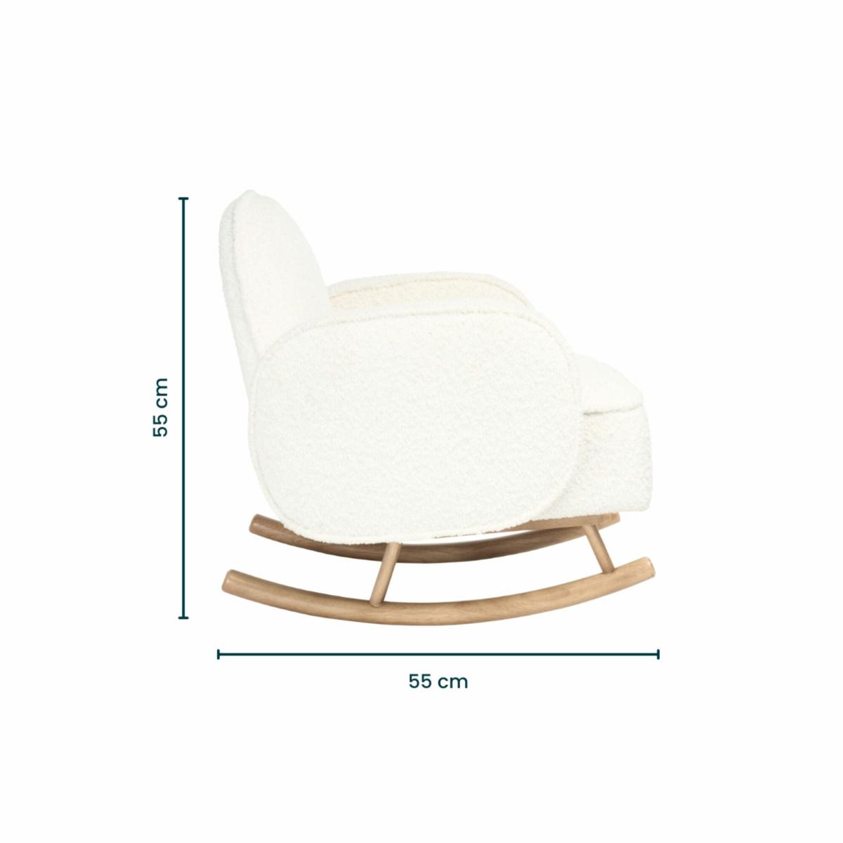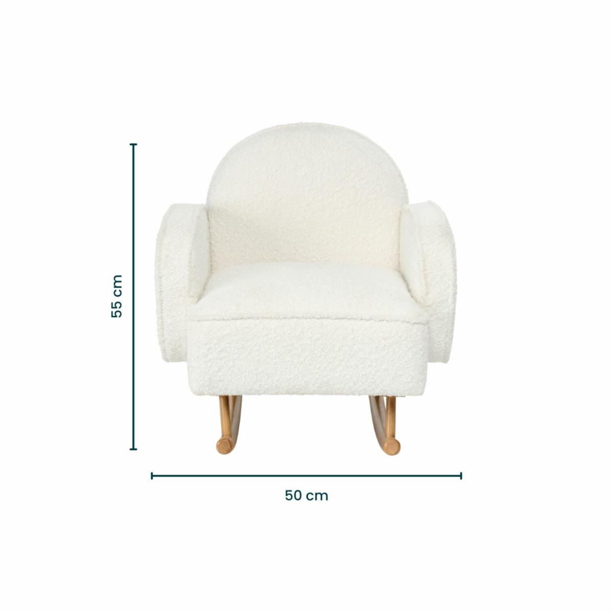 * Well padded deep seat with high backrest and wide armrest * Miniature version of Micah Rocking Chair * Suitable for children 3 - 6 years old * Offers comfy and ergonomic seating for growing child The Tutti Bambini Micah Mini Me Rocking Chair brings luxury and comfort to your child’s room, designed for ages 3 to 6. As a miniature replica of the original Micah chair, it features a padded seat, high backrest, and wide armrests, offering a cosy and ergonomic spot for your child to relax, read, or play. The durable Scotchguard-treated boucle fabric ensures longevity, while the rocking motion promotes calmness. This stylish mini chair fosters independence and creativity, making it a delightful addition to any playroom or nursery.