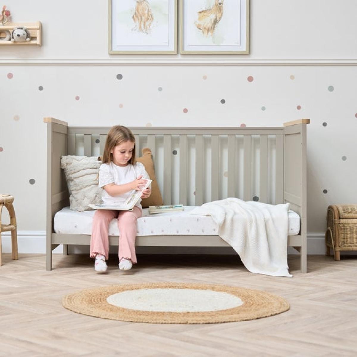 I love the Misha cot bed for its simple, timeless design that suits a variety of nursery styles, from Scandi minimalism to cosy, traditional spaces. Its neutral tone makes it incredibly versatile, allowing it to be paired with colourful or pastel accessories for a lively look, or kept understated for a calm, muted palette. Practical styling tips include layering with soft textiles like cosy blankets or bunting around the rail for visual interest, and choosing complementary storage solutions such as woven baskets or sleek wardrobes. It works particularly well in light-filled rooms, where its clean lines and soft finish can really stand out, creating a serene environment that feels both functional and inviting.