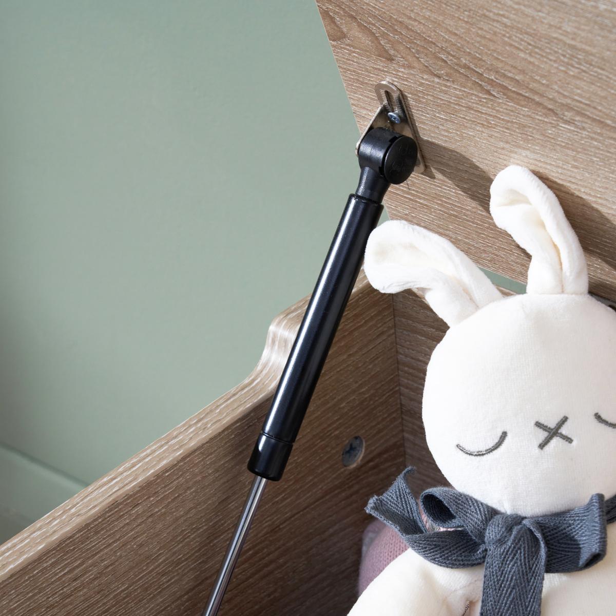 I love how this little chest combines practicality with a natural, understated look that works beautifully in both modern and traditional nurseries. The light oak finish brings warmth without overwhelming a space, making it versatile for a range of colour schemes. It’s perfect for keeping toys tidy while adding a subtle Scandinavian vibe to the room. For styling, I’d recommend pairing it with neutral or pastel accents to keep the room calm and inviting. Additionally, placing a soft rug and some minimal accessories on top can create a cosy corner, while leaving space for everyday essentials. The toy box’s simple silhouette also means it meshes well with various furniture styles, making it a long-lasting addition as your child grows.