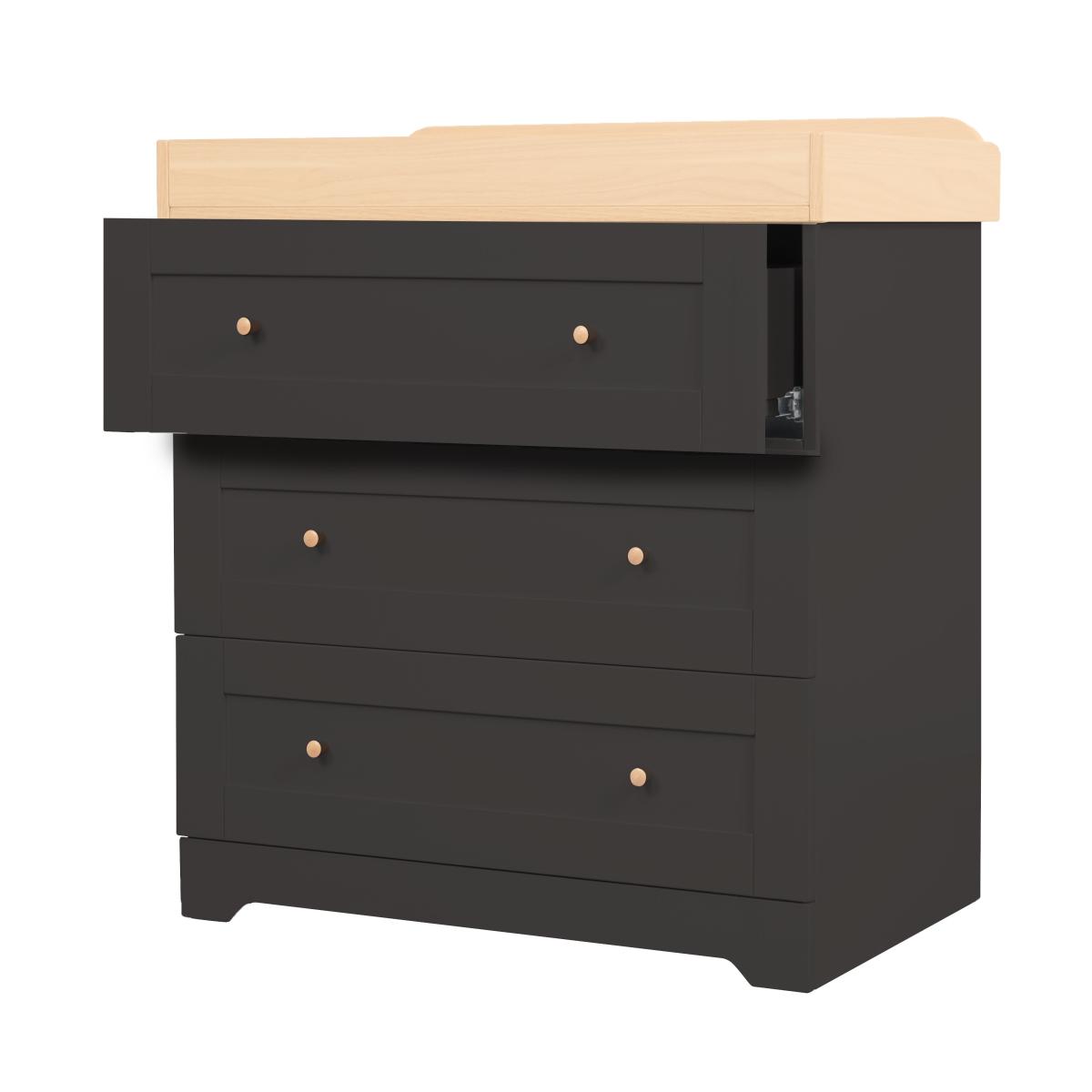 I’m a fan of the Rio slate changer for its smart charcoal-grey finish paired with a light beech top - it feels both contemporary and timeless. The three spacious drawers keep nappies, vests and muslins neatly tucked away, while the removable changing tray means you can convert it into a standard chest as your little one grows. This piece works brilliantly in Scandi-inspired, modern farmhouse or even minimalist nurseries thanks to its clean lines and muted palette. For styling, tuck matching wicker bins into the drawers for quick grab-and-go storage, add a neutral cotton changing mat and hang a simple floating shelf above for extra books or soft toys. A small plant or framed print beside it will soften the look without crowding the surface.