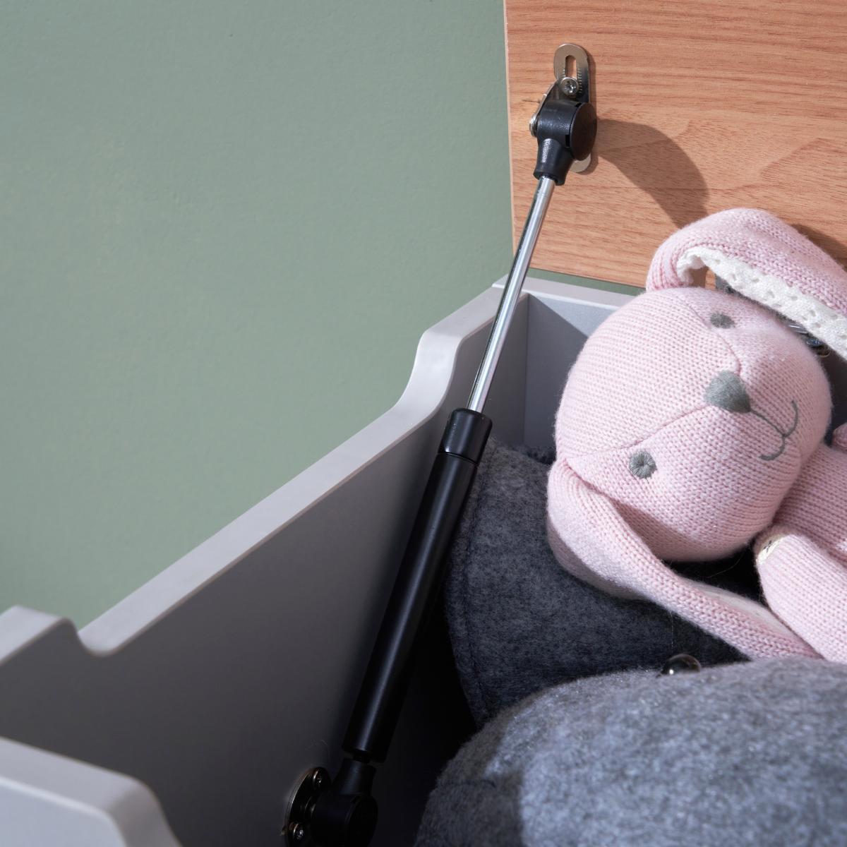 I love this toy box for its clean, minimal design and versatile colour palette, making it a practical addition to a variety of nursery or children’s room interiors. The dove grey finish is understated and sophisticated, allowing it to blend seamlessly into modern, Scandi, or neutral schemes. It also offers practical storage with a lid that’s easy to open and close, helping to keep clutter tucked away. For styling, I’d recommend pairing it with natural wood accents or soft pastel touches to keep the space inviting and calm. It works well in both play areas and nurseries, especially if you’re trying to maintain a clutter-free yet warm aesthetic, and it can be a long-lasting piece that adapts as your child grows.