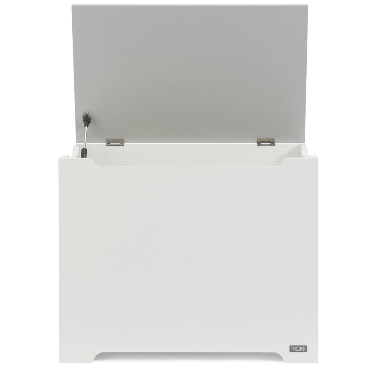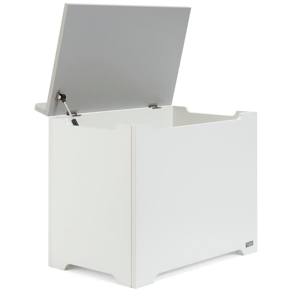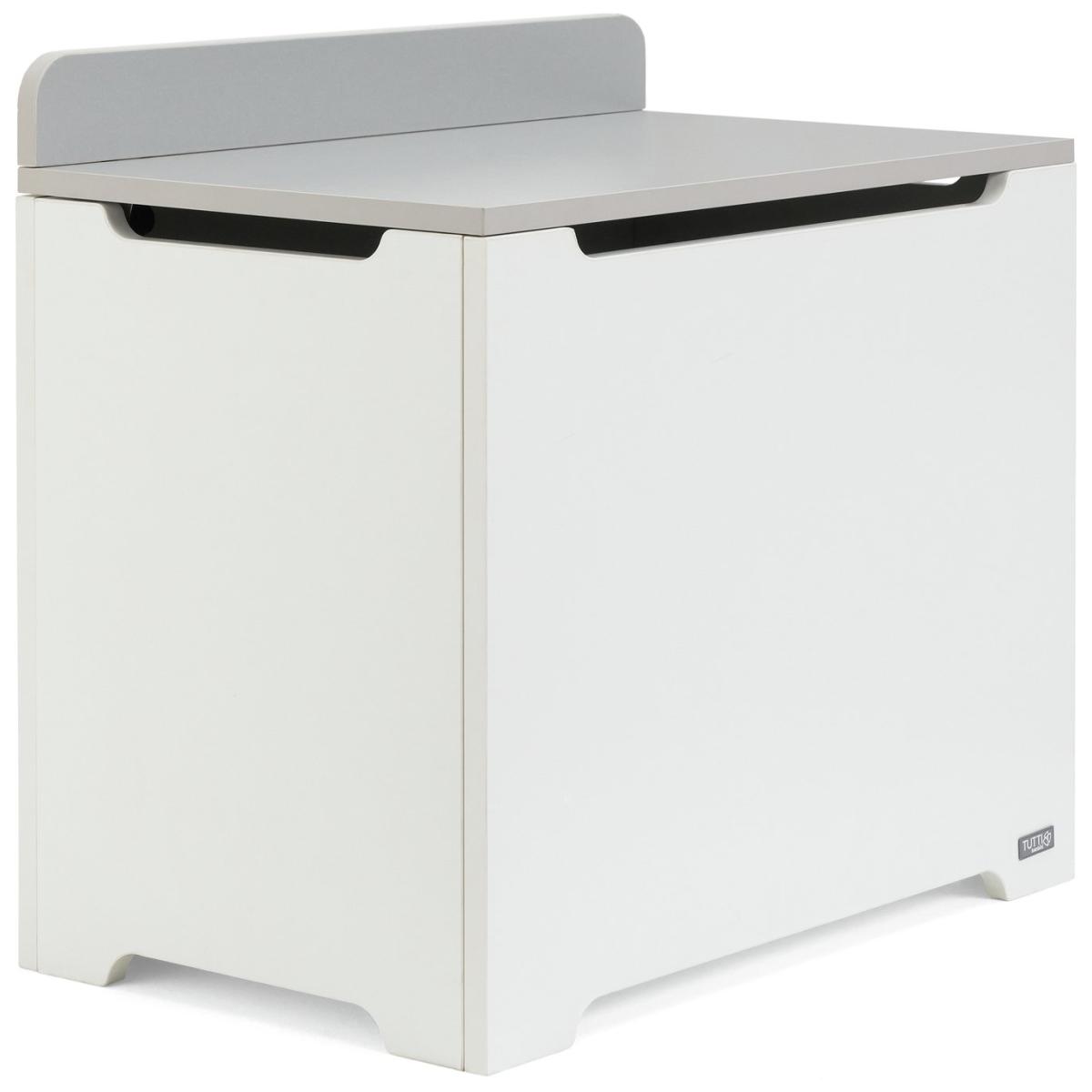 With its structured simplicity and a white and dove grey finish, the Rio toy box provides a spacious storage solution to keep your child's bedroom tidy and organised, and it also doubles as a seating area. The soft-close hinge provides safe and easy access, protecting little fingers from being caught. Stylish and practical, the Rio toy box complements any modern abode. Can be used as a child seat for long term use. Part of the Rio collection. Made from MDF with a painted finish. Size H56.5, W60.5, D37.5cm. Weight 16kg. Capacity 128 litres. Self-assembly. Package Dimensions: Package 1 dimensions: H70, W59.5, D14.5cm. Package 1 weight: 16.5kg. General information: Manufacturer's 3 year when registering online guarantee.