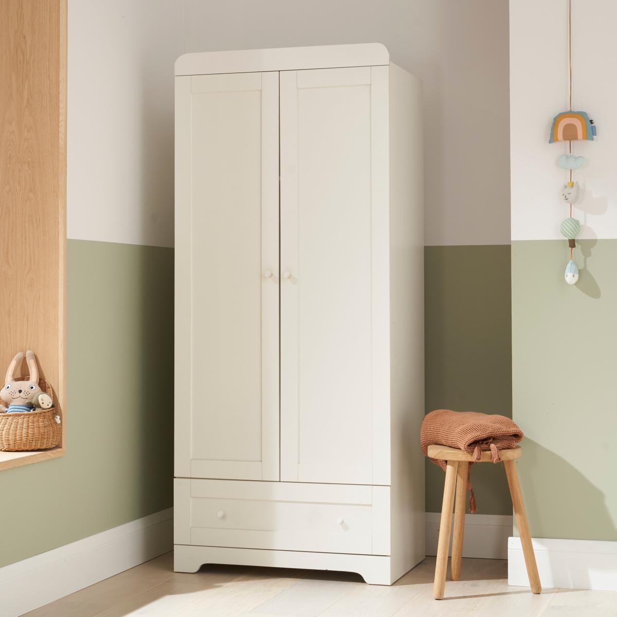 * Matching furniture and accessories available to complete the look. * Tutti Bambini 3 Year Guarantee available. Offering ample storage, this double-door wardrobe comes with a convenient internal storage shelf and a full-width drawer. The top of the wardrobe provides additional space for storing items. Complete the coordinated look with matching furniture and accessories, all under the Tutti Bambini 3 Year Guarantee.