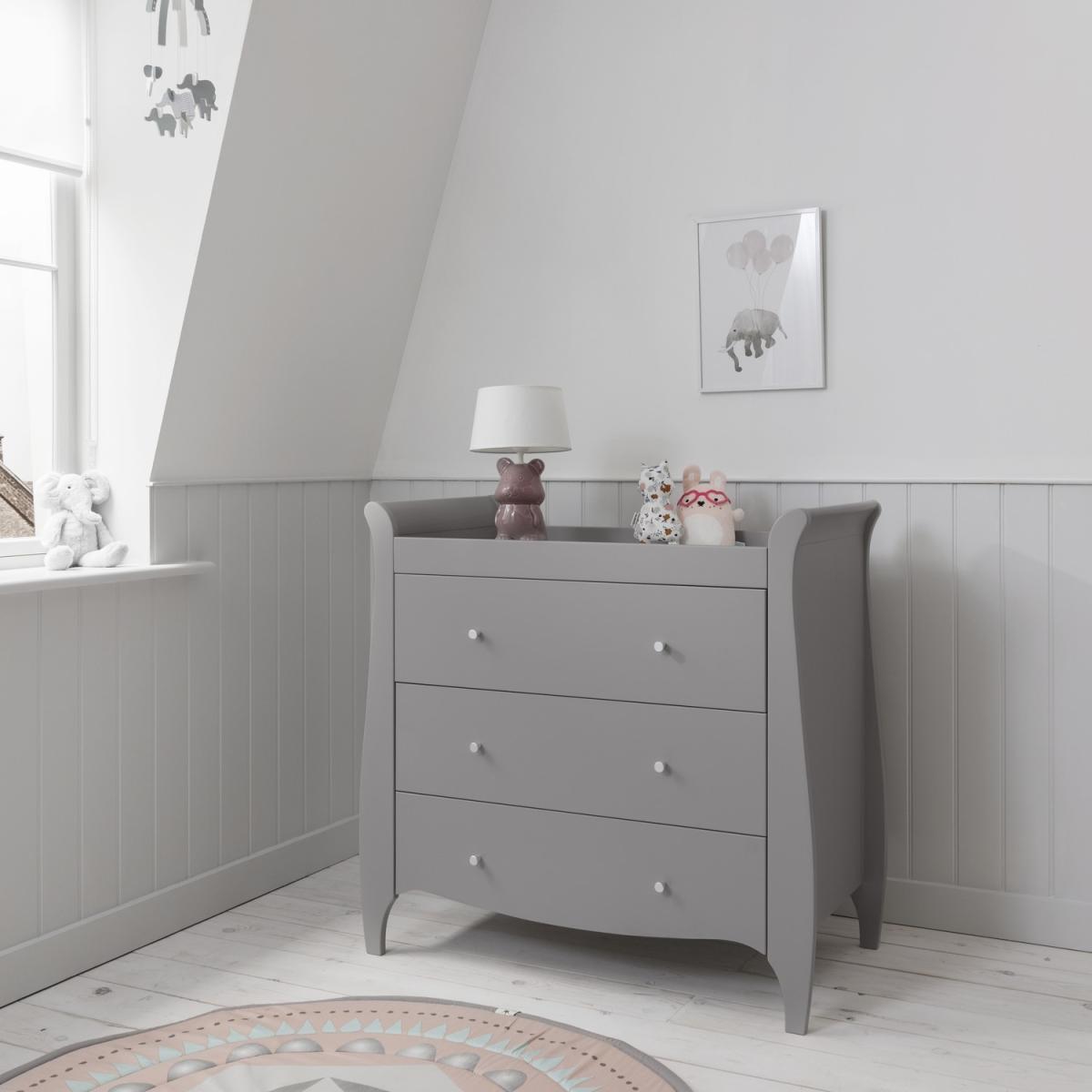 The Tutti Bambini Roma Grey changing table is a versatile piece that works well in both modern and classic nursery schemes. I love its muted grey tone, which offers a soft, neutral look that can be easily styled with colourful accessories or kept minimalist for a calm, understated feel. The three drawers provide practical storage for essentials, making it a functional addition. To style it effectively, consider pairing with light-toned or patterned textiles and adding decorative touches like plush toys or framed prints above to create a welcoming space. Its clean lines and subtle colour make it adaptable for various interior themes, from Scandinavian to shabby chic.