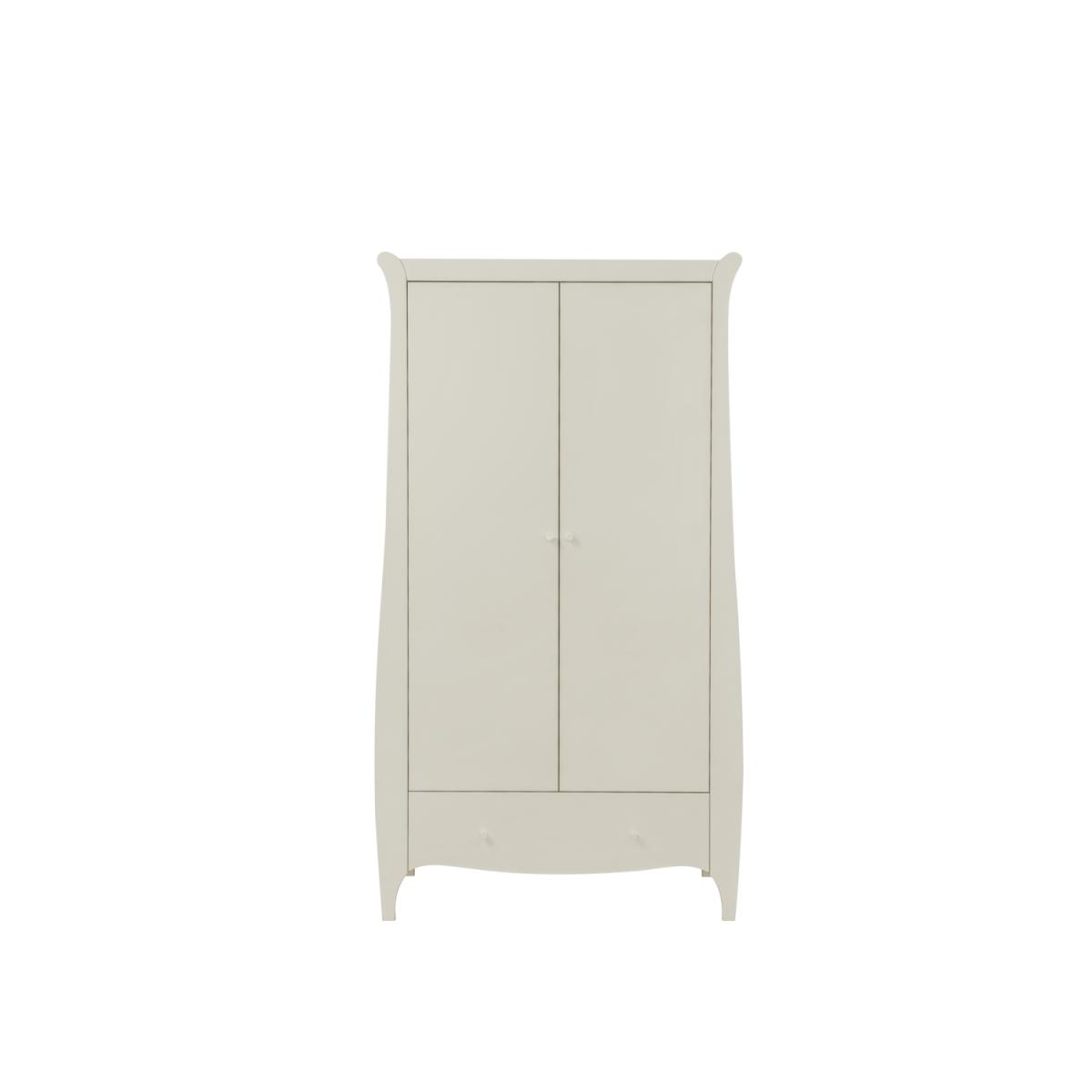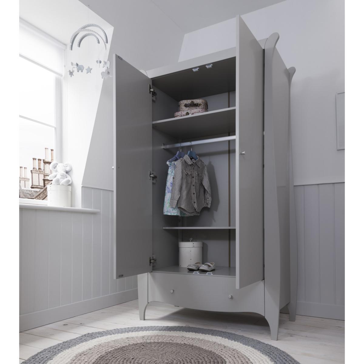 . The Tutti Bambini Roma Grey Double Wardrobe features a simple yet classic sleigh design with ample storage for your little one’s essentials. Made from solid wood the Roma wardrobe is a timeless piece that will fit effortlessly into your nursery making it the perfect choice when looking for quality style and practicality. Dimensions H180 x W100 x D50 cm Features. One adjustable shelf and one fixed shelf. Two soft closing doors. One full length hanging rail. Full length drawer. Matching furniture is available including cot bed and changing table. All Tutti Bambini products are compliant with British Standards for Safety and Performance. Made from New Zealand Pine and MDFWhite Down Matt finish..