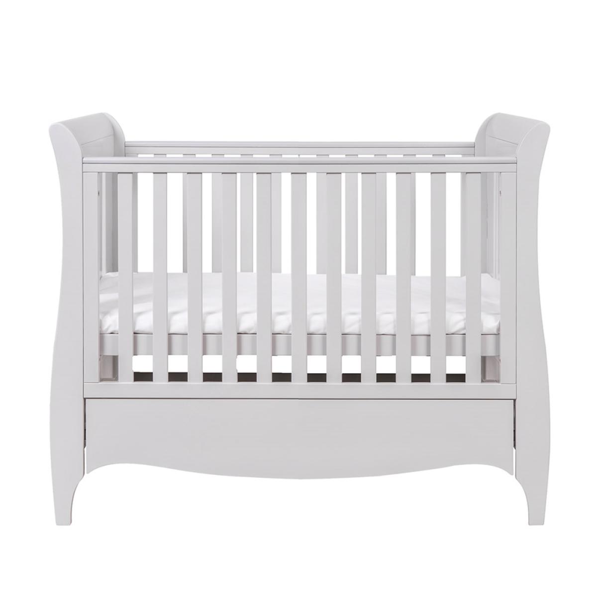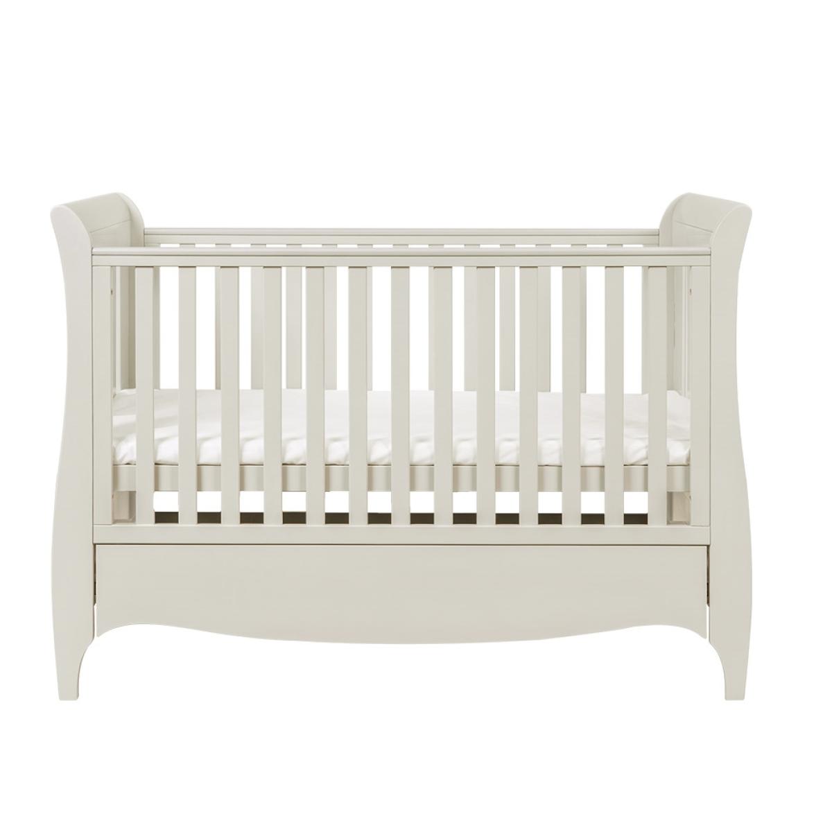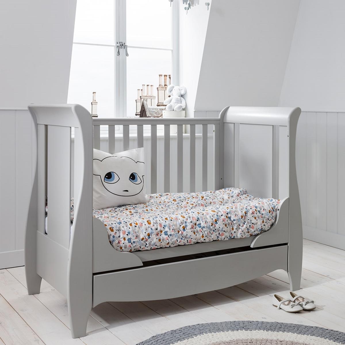 From birth to 4 years, the Roma Mini Sleigh Cot Bed with Under Bed Drawer from Tutti Bambini will transform as your little one grows! With 3 mattress positions available, you'll rest easy knowing they'll be safe and secure at all times. Once outgrown from the cot, rearrange into a toddlers bed or the perfect daybed for night-time reads, simply adjust the frame to suit the needs of your tiny tot. Including a large under-bed drawer, store all essentials; bedding, comforters and toys and enjoy a mess-free bedroom. Not for long though once they find their feet! With all 3 colourways being neutral, however you decorate the nursery this mini cot bed is sure to fit in beautifully, ready for you to welcome home the new arrival of your beautiful baby!.