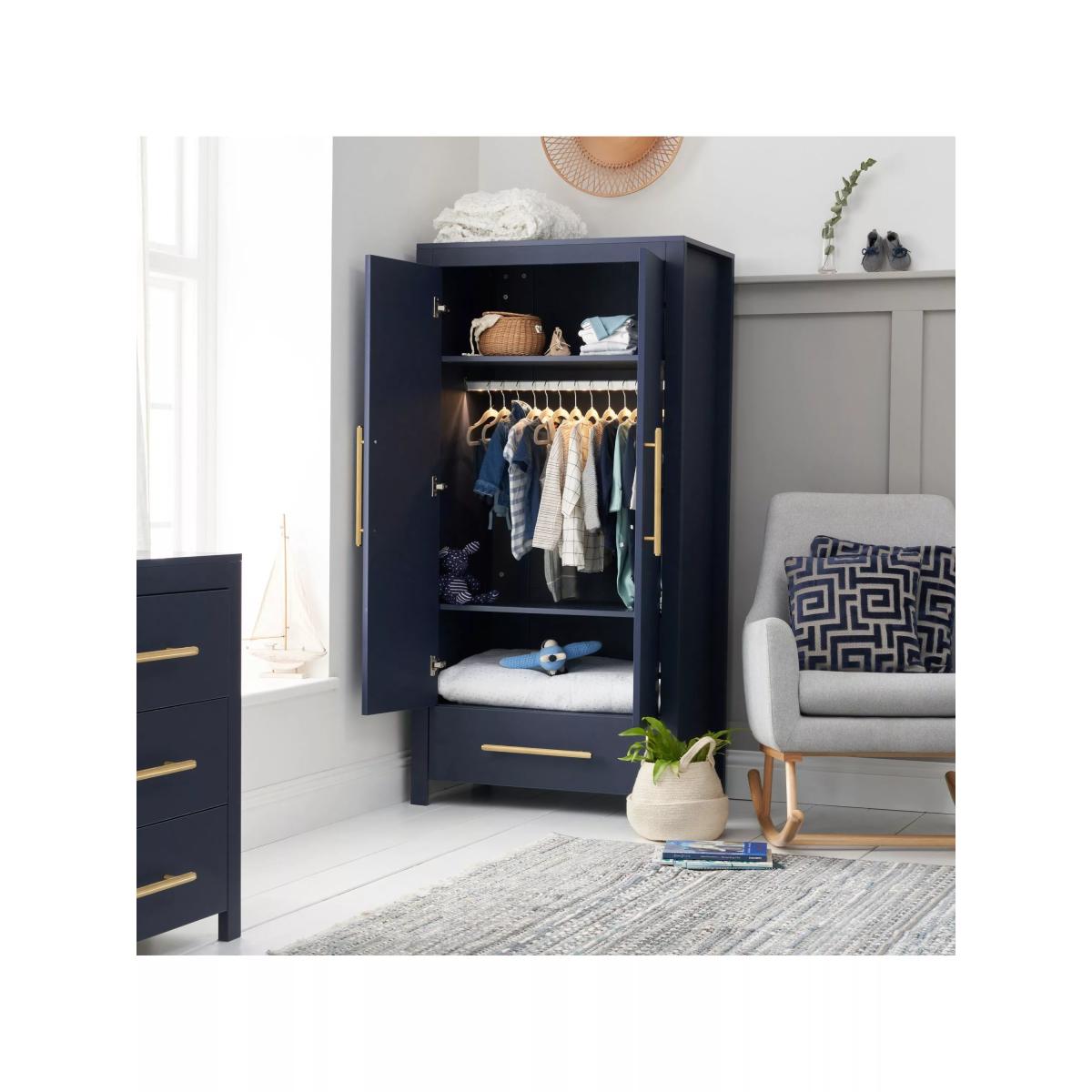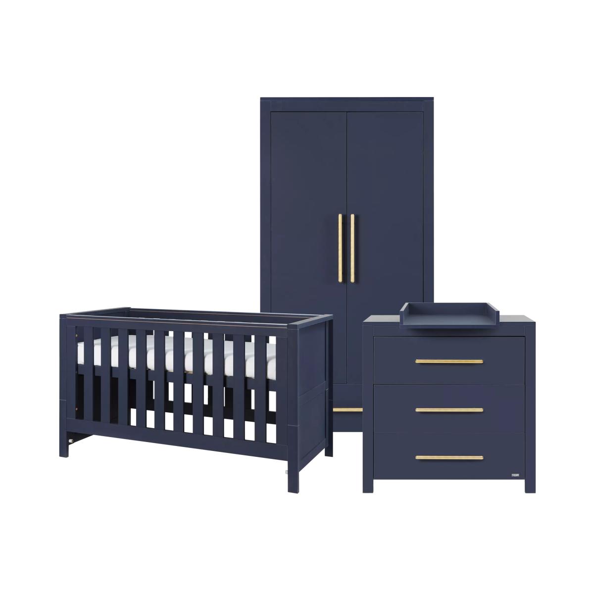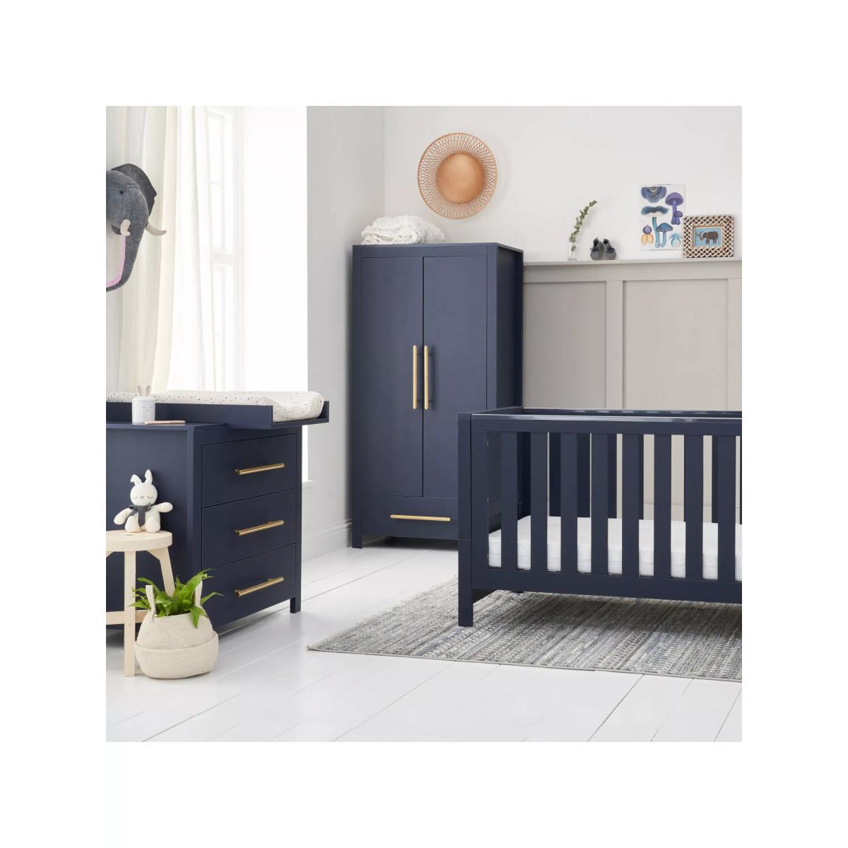 Combining a chic silhouette with functional features, the Tutti Bambini Tivoli 3 piece room set offers a snug and inviting sleep environment for your child. The cot bed features three adjustable mattress height positions and it seamlessly transforms into a toddler bed or sofa bed. The clean-lined chest changer has three full-size, soft-close drawers and a removable front-facing changer top so it can grow with your little one. The wardrobe features a light-up hanging rail as well as a full-width drawer, shelf and hanging space so you can make the most of your storage. For this item, our supplier will provide a room-of-choice delivery service.