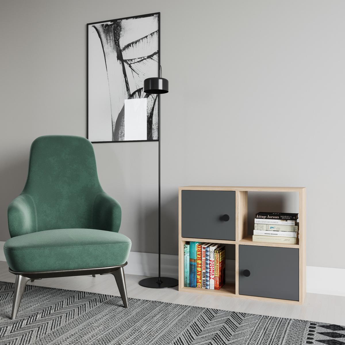 I’m a fan of this oak-effect and anthracite cube unit because its clean lines and muted palette slot neatly into modern, Scandi or even industrial-leaning interiors. At around hip height it can sit alone as a low bookcase or pair up with another for a full wall of storage without overwhelming the room. Styling tips: mix books and decorative objects in alternate compartments to balance solid doors with open display; use woven or grey bins behind the anthracite doors to hide clutter; top it with a simple lamp or sculptural plant for height variation. Its modular nature means you can stack or join multiples for a tailored look as your needs change.