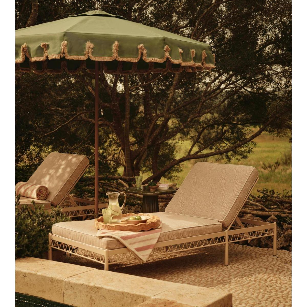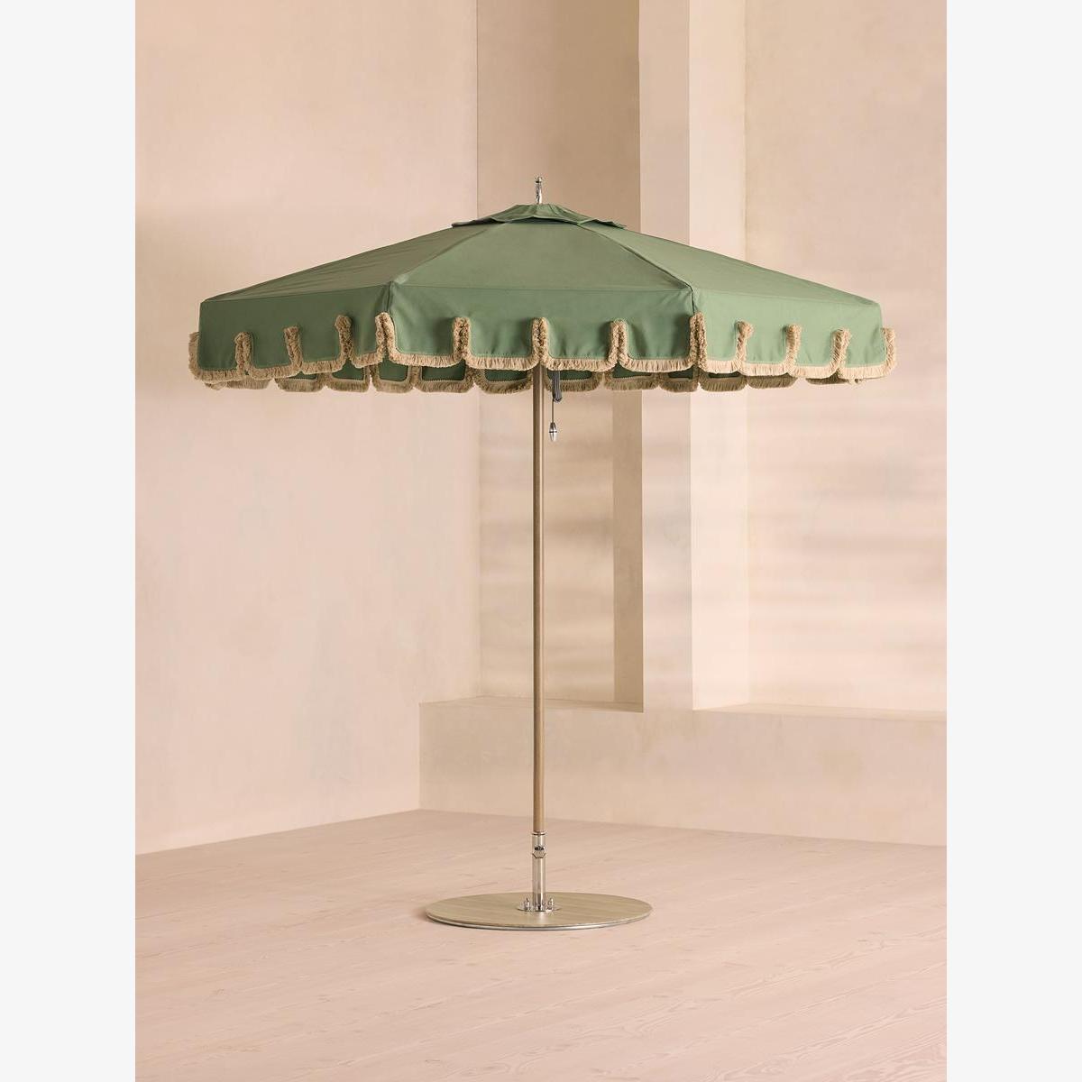 Renowned outdoor lifestyle brand, Tuuci, provides all of the parasols seen in our Houses. This sage-green fringed design recreates our poolside experience in your own garden, transforming your outdoor space with a vintage-inspired House feel. Innovative engineering with marine-grade materials means this style can withstand the harshest environments.