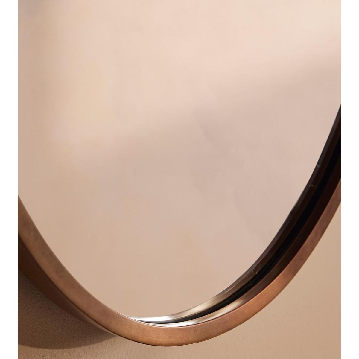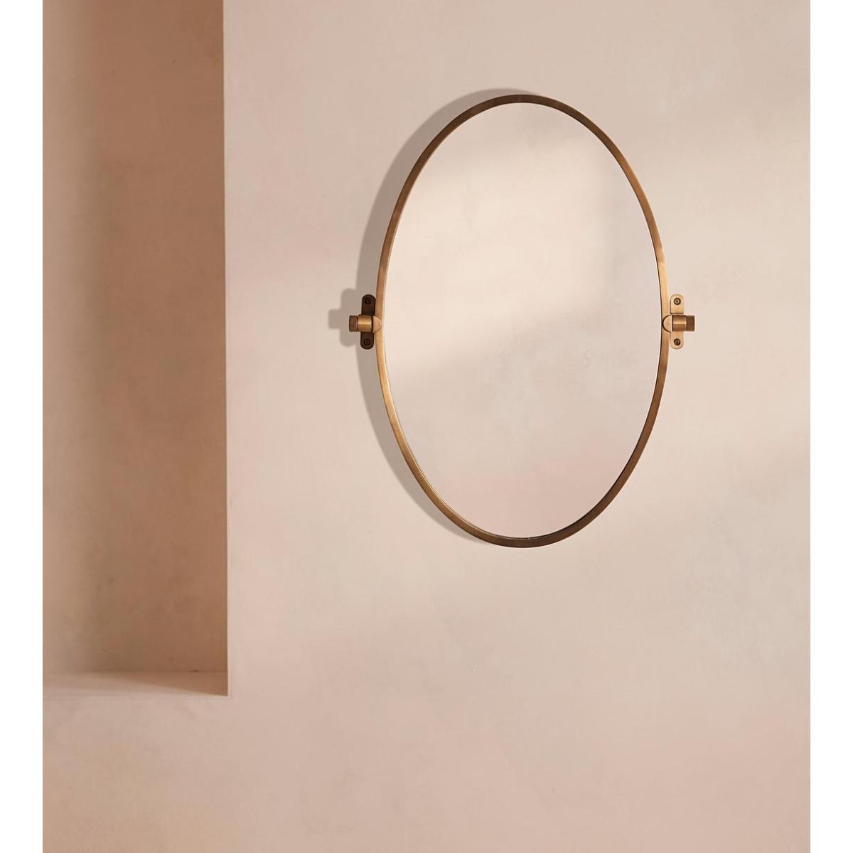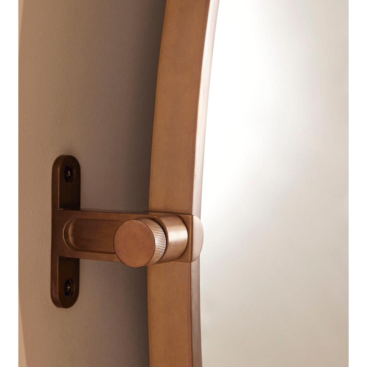 An antiqued finish to the brass lends the Tuxford wall mirror a vintage aesthetic inspired by the interiors of Soho House Rome. Tilt its suspended frame up or down to adjust the angle.