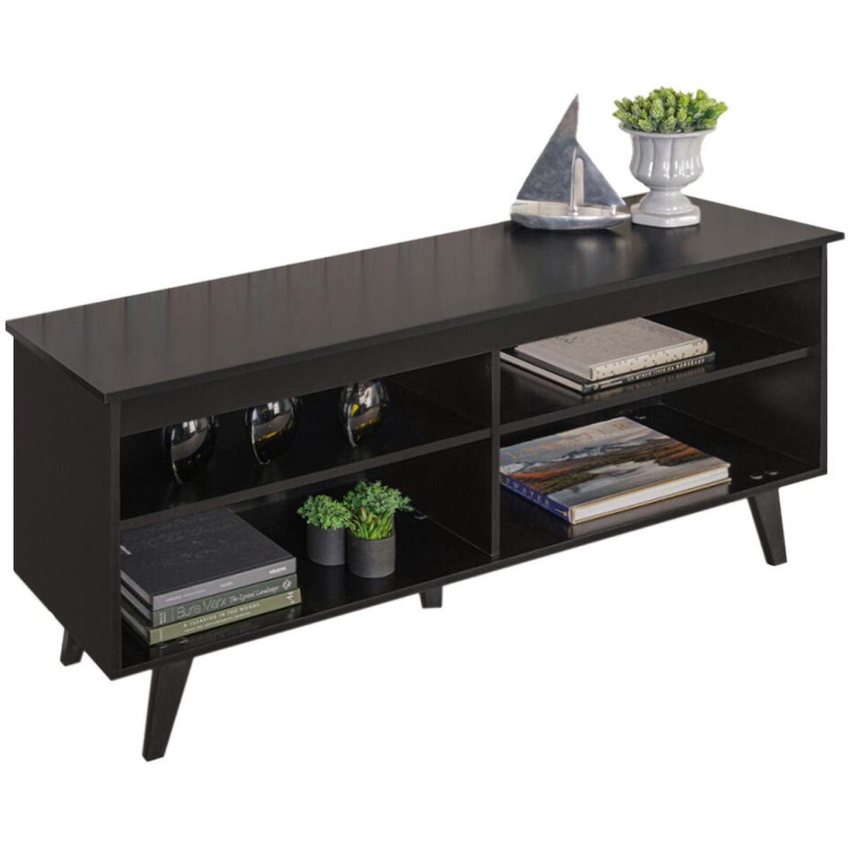 Designed to be a perfect fit in any living room, family room or bedroom adding contemporary styled functionality, the Madesa Entertainment Center TV Stand has four large open shelving areas to place your entertainment equipment.