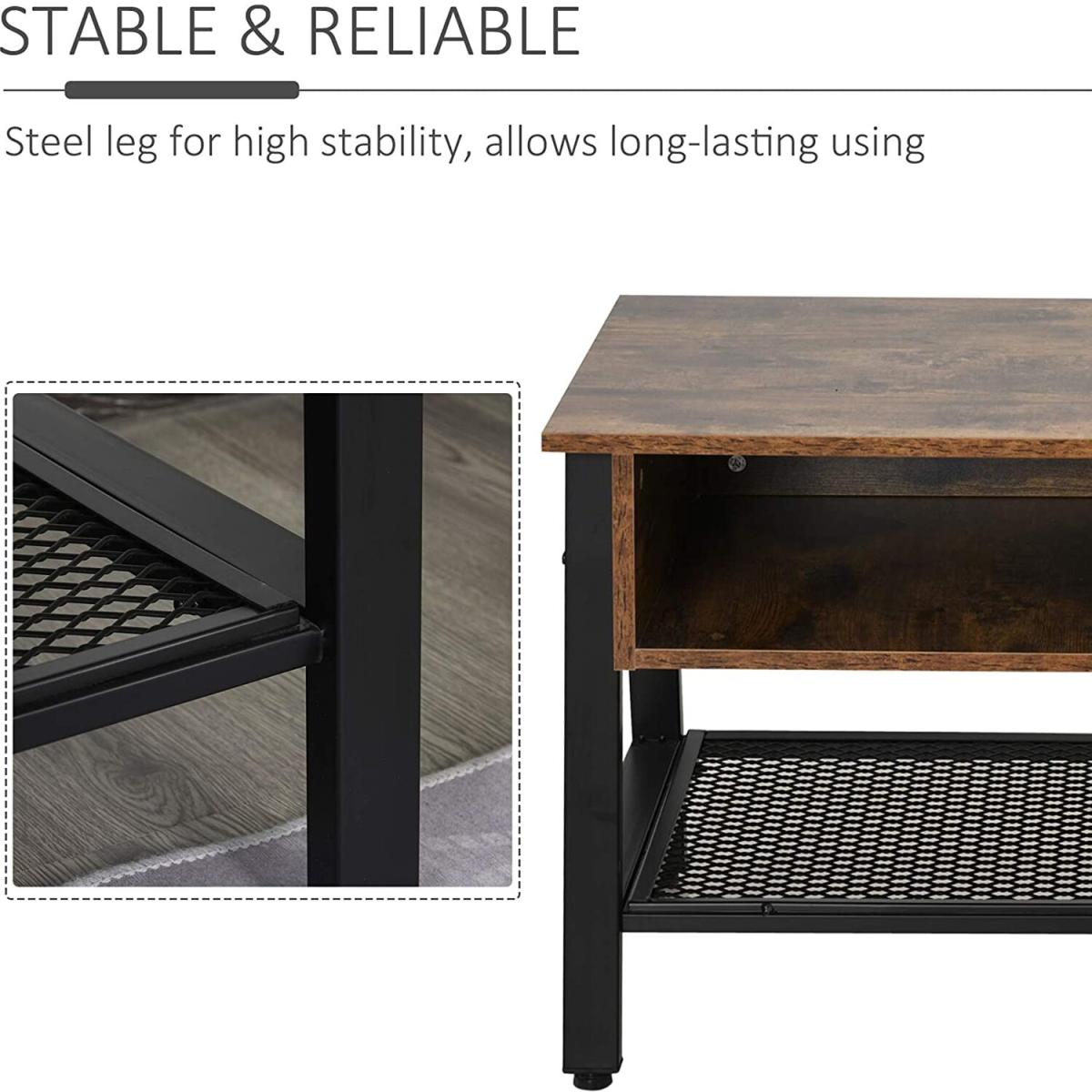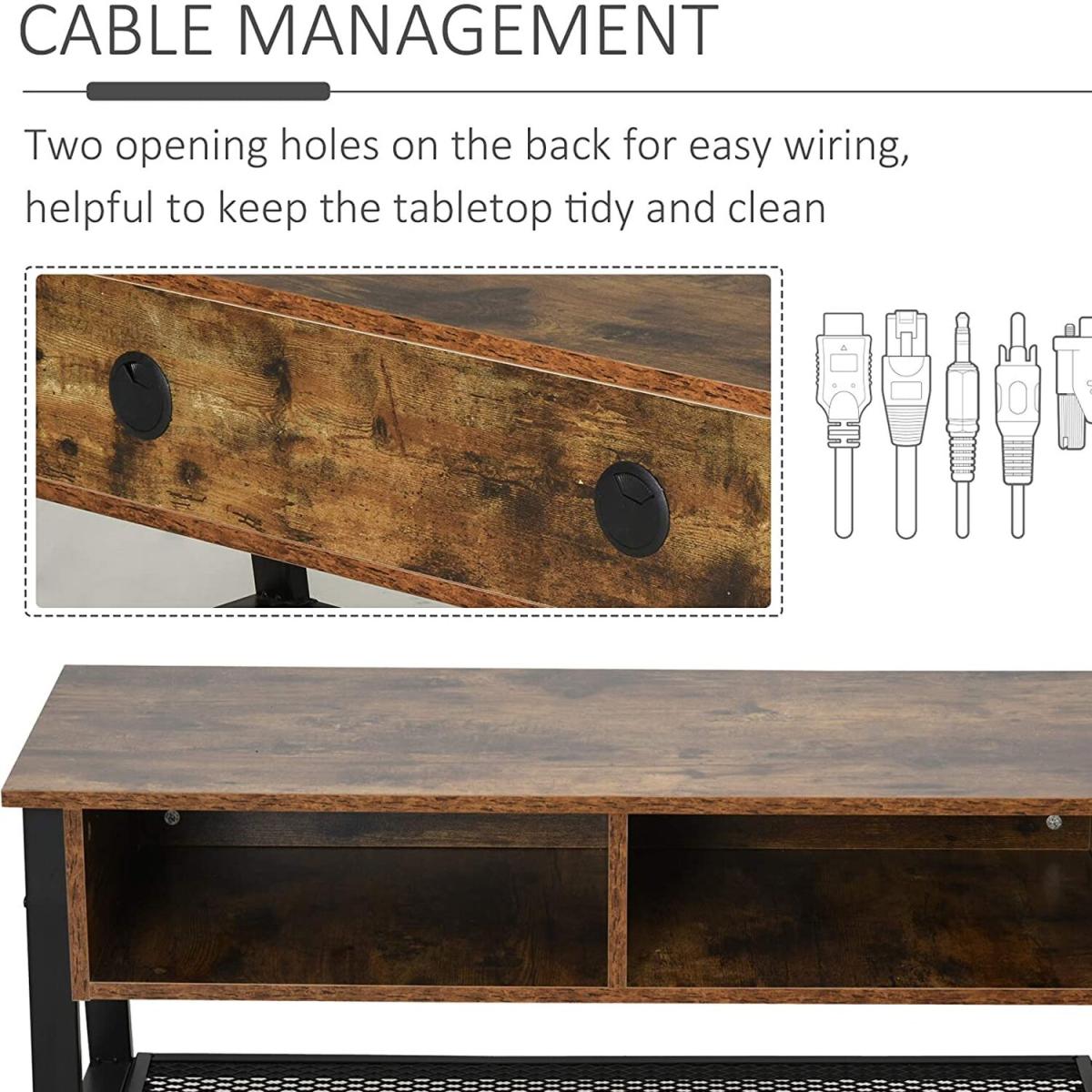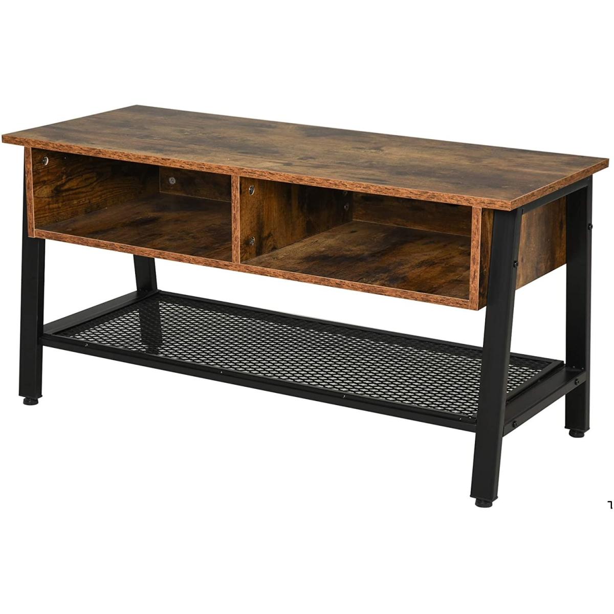 Versatile and unique industrial design which will stand great in all style homes and offices Features two small open compartments, a large mesh shelf and open top for holding your TV or even working from Steel bottom mesh shelf hold everything without bending Two cable holes to manage the wires and keep them together. Rubberwood base and legs for a solid structure, with a durable particleboard top in a smooth finish Adjustable foot pads to keep the balance. Tabletop is suitable for TVs smaller than 45''. Maximum load 50kg, easy to assemble.