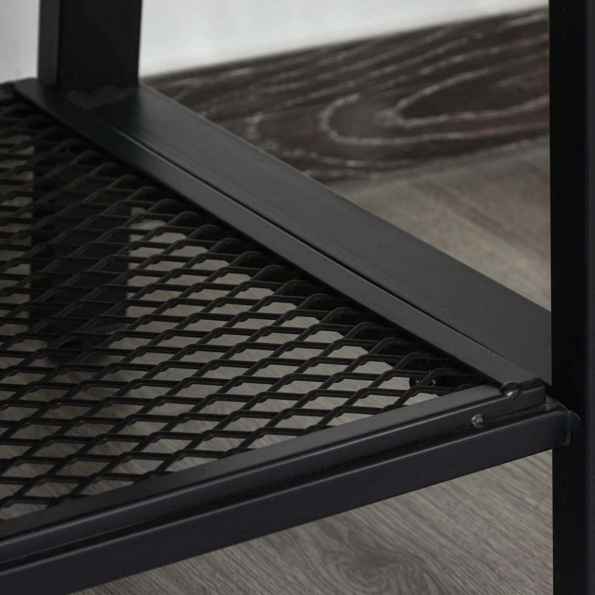 I really like how this stand combines a wood-effect top with a black metal frame - it feels both modern and versatile. The two open cubby shelves plus the mesh lower rack give you neat spots for games consoles, DVDs or storage baskets, and help keep cables out of sight. It works well in industrial, Scandi or minimalist schemes and the neutral colours mean you can easily swap accent pieces. Try styling the top with a slim soundbar and a low plant, pop woven baskets on the lower shelf for remotes and magazines, and lean a simple black-and-white print against the wall to complete the look.